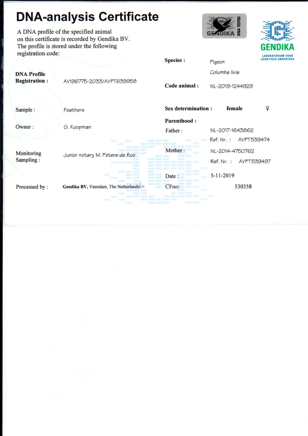 实力非凡种鸽 “黄金卡布瑞” x “金牌” 直孙女