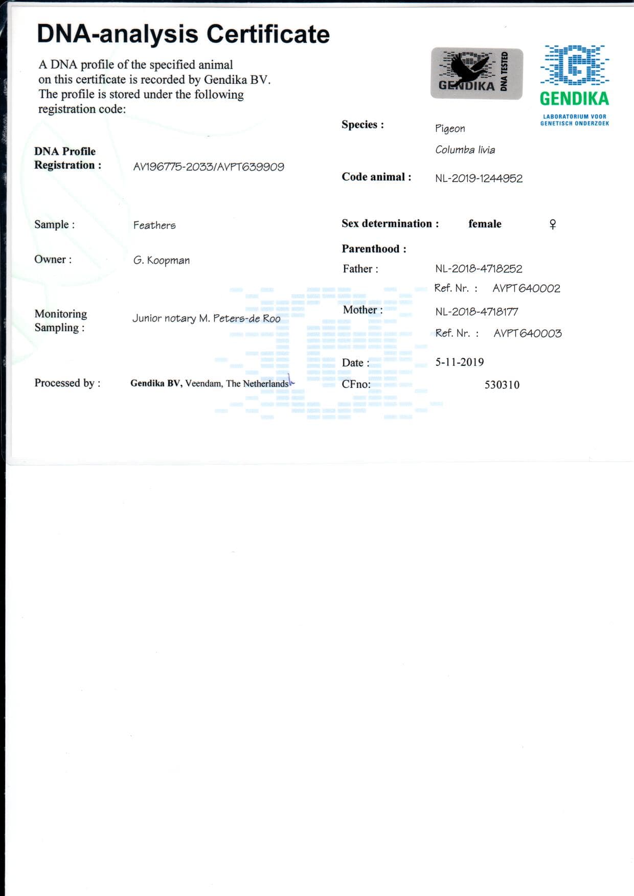 “泰莎”直女,  “泰莎” 荣获:奇梅 9,460羽 1名 ( 17,862羽分速最高)