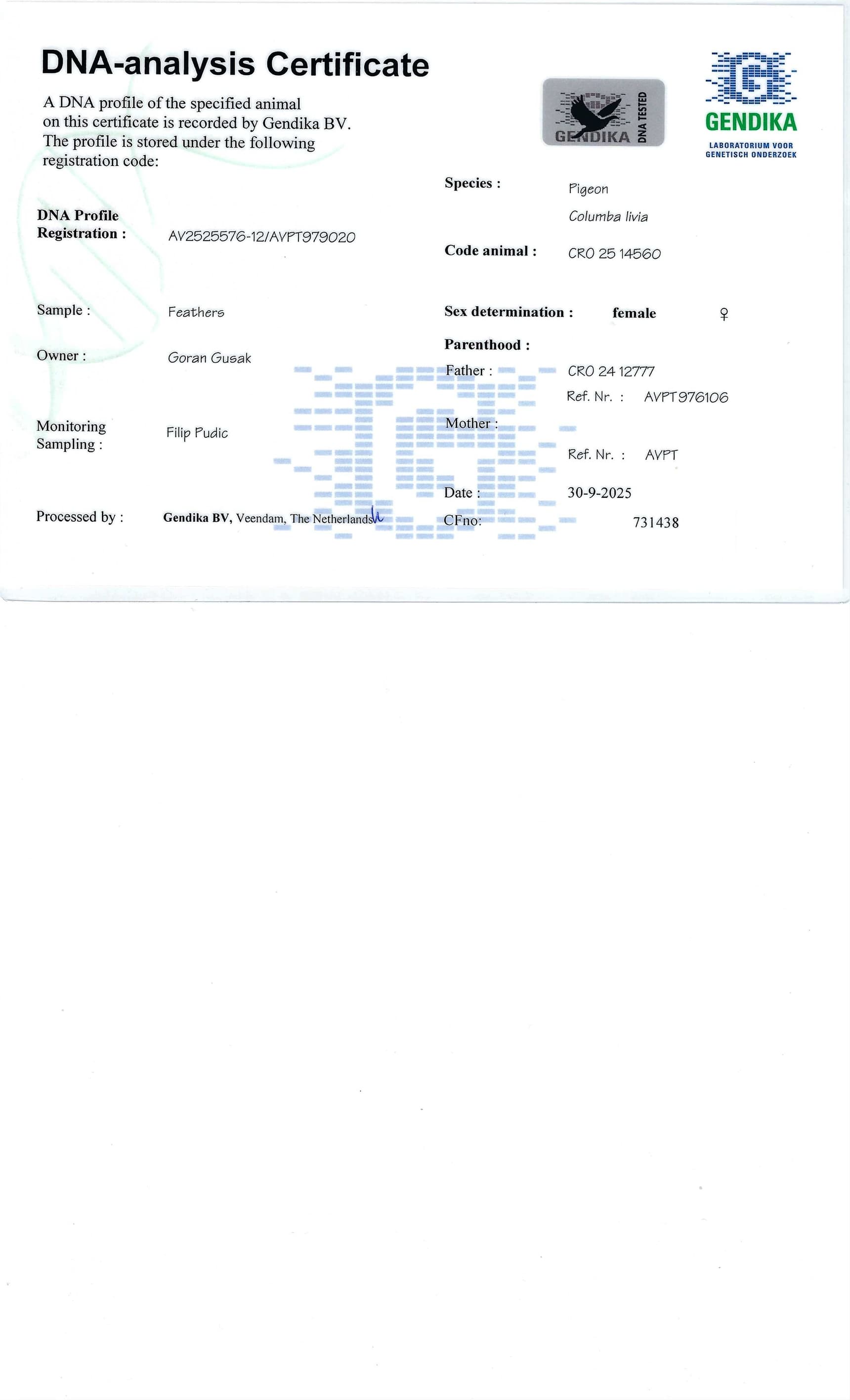 X“纳丁” (KBDB 鸽王全国1位– 丹尼尔斯 W.)作出