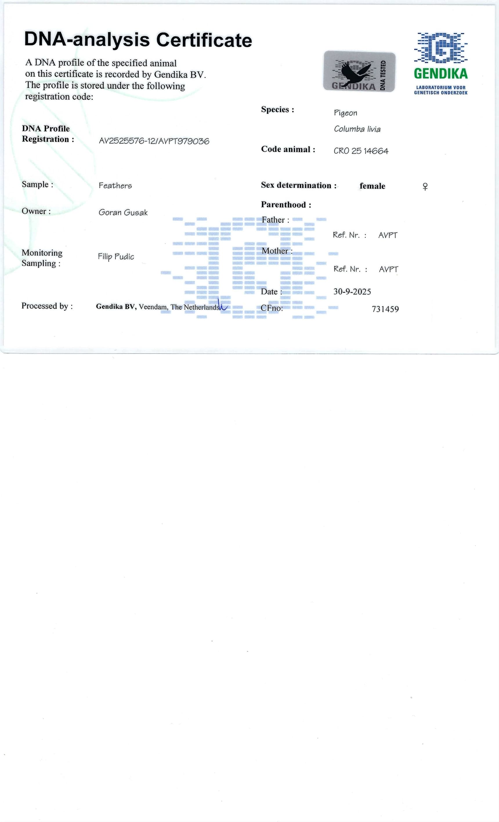 子代荣获: 马赛克 2,276羽1名 – 省赛 10,792羽3名