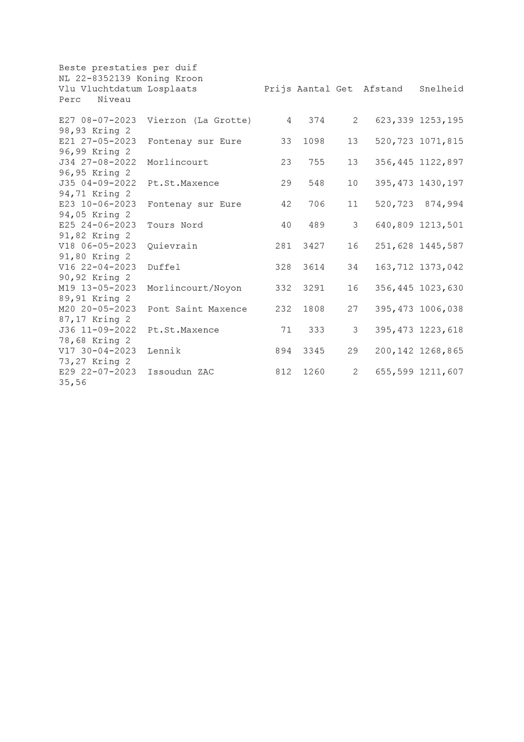 “NL12-1455079” (荣获联盟鸽王 4位, 8位, 9位和10位) x “NL17-1140442”作出