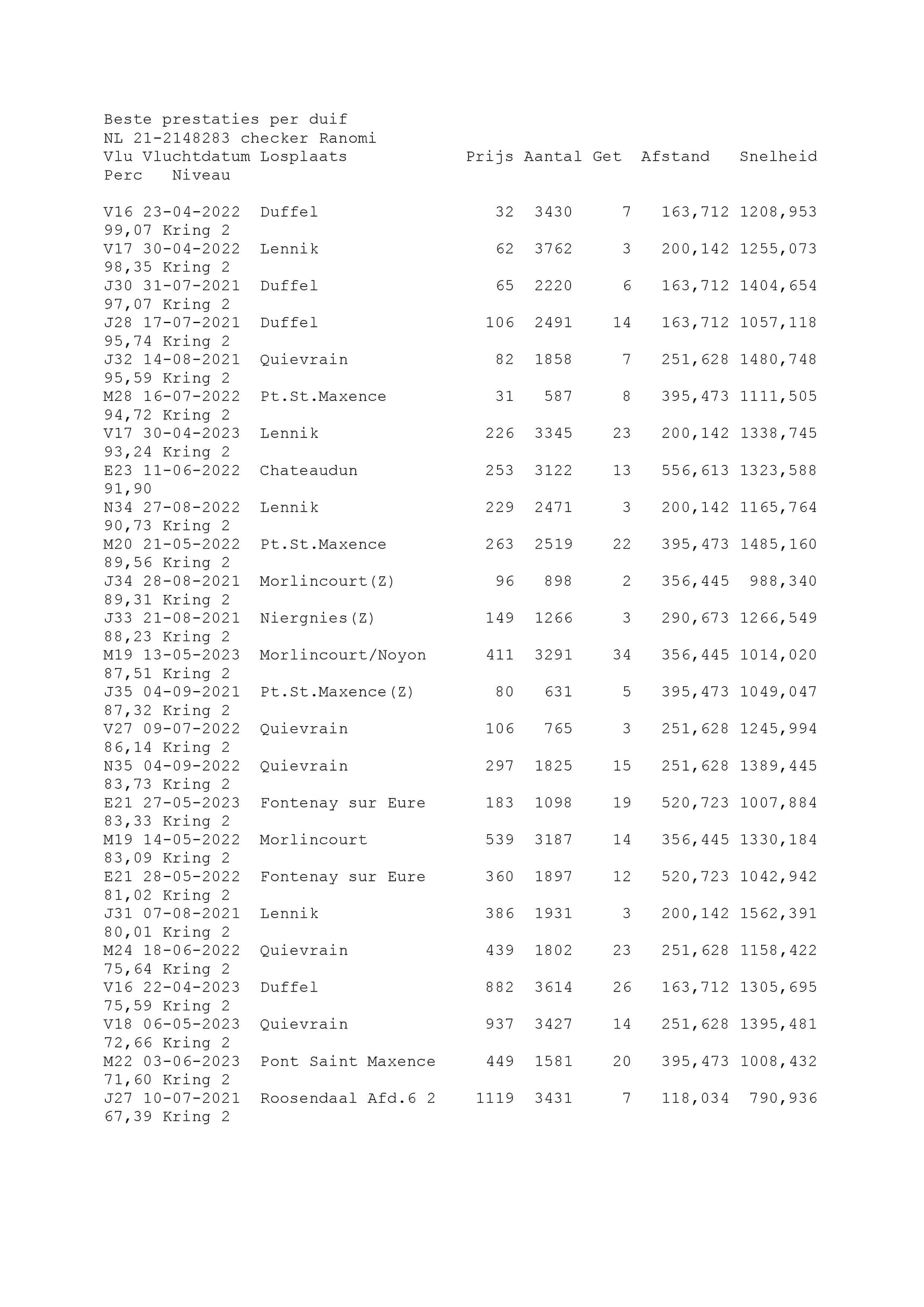 荣获, 无重复计算: 26次入赏 – 2 次前1/100 - 17 次前1/10