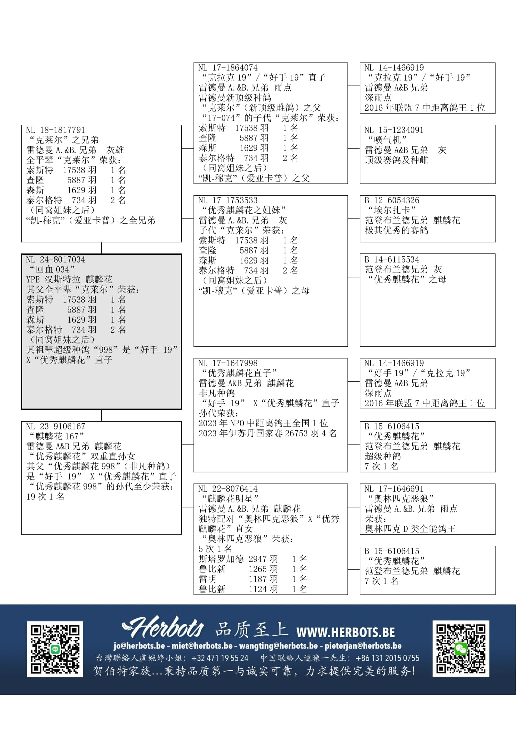 2 次奥林匹克鸽王, 3 次全国鸽王1位, 大型比赛20多次冠军;是当前基础种鸽“阿图罗”之父