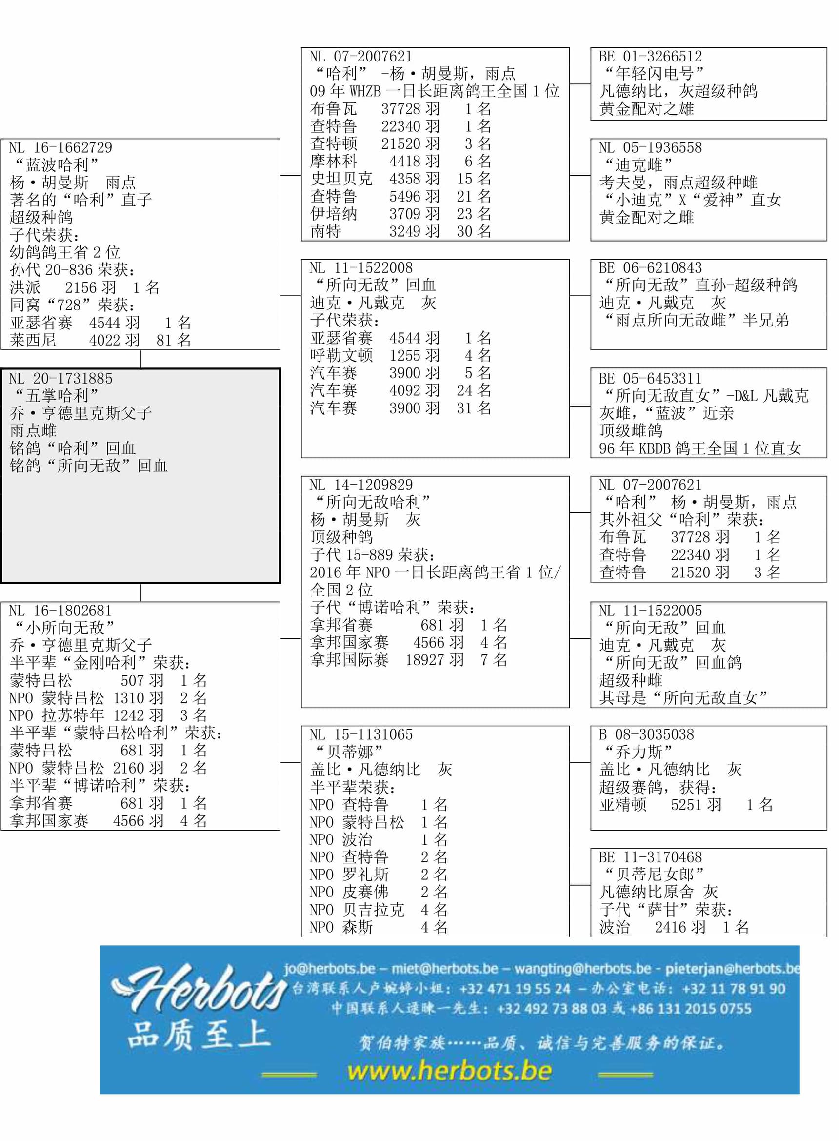 世界铭鸽 “哈利” (胡曼斯) 直孙女