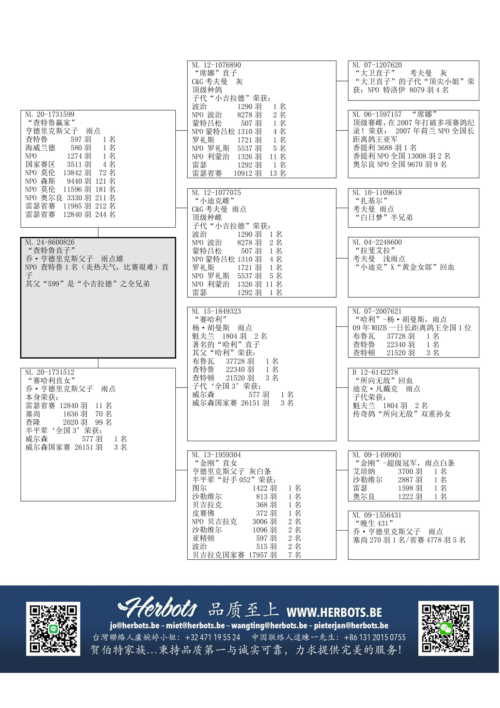半平辈“好手 052” (4 次1名 –  贝吉拉克国家赛17,957羽7名 - 沙勒维尔 1,096羽2名 – 等等)