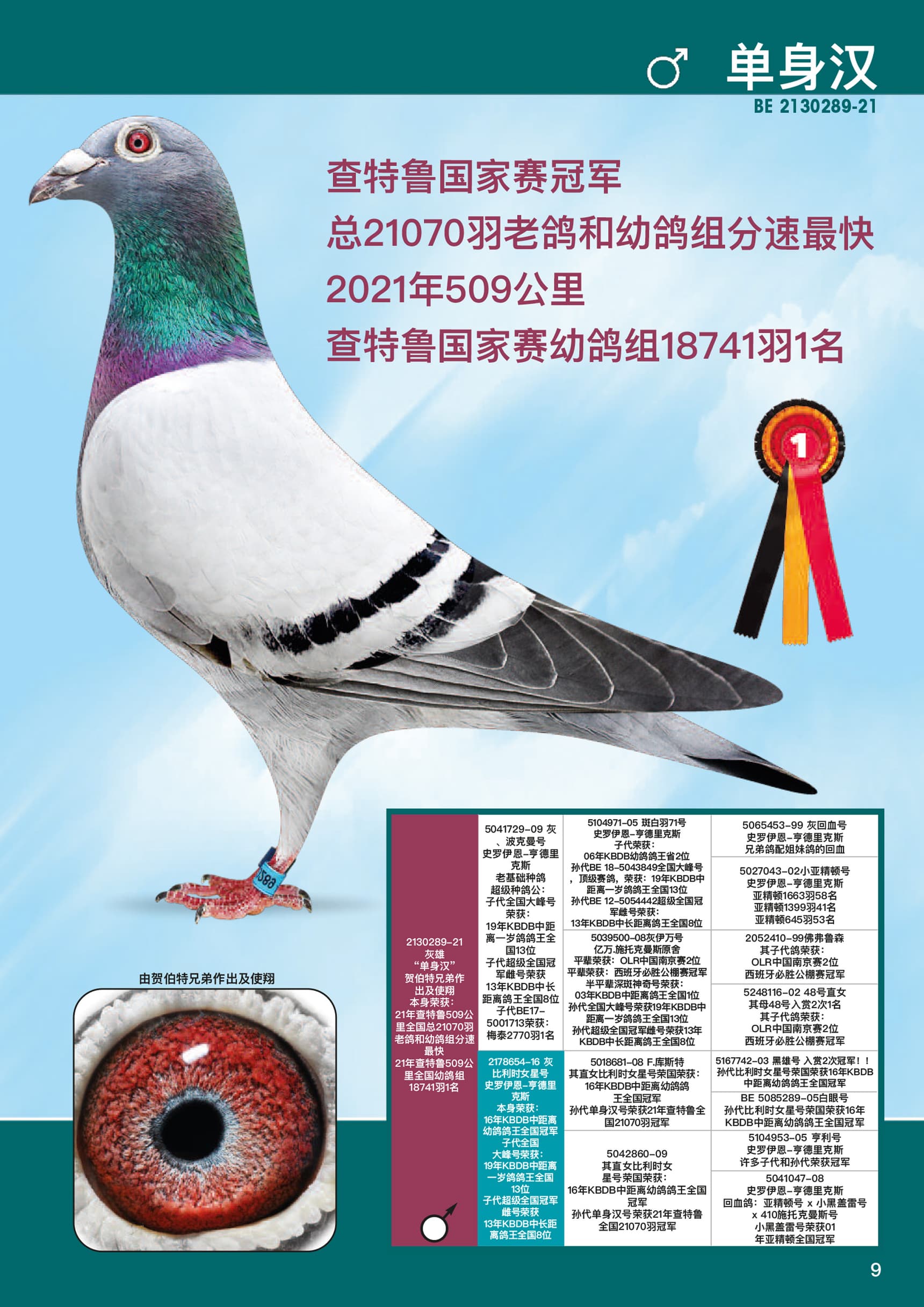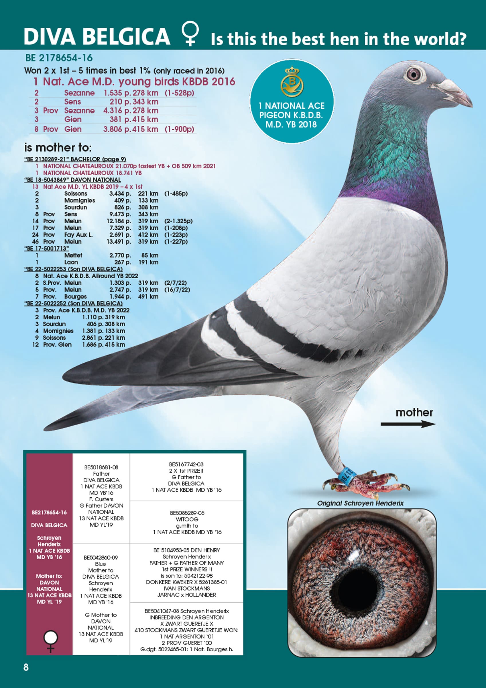 子代代表 BE502253-22荣获: 2022年KBDB 幼鸽鸽王全国8位