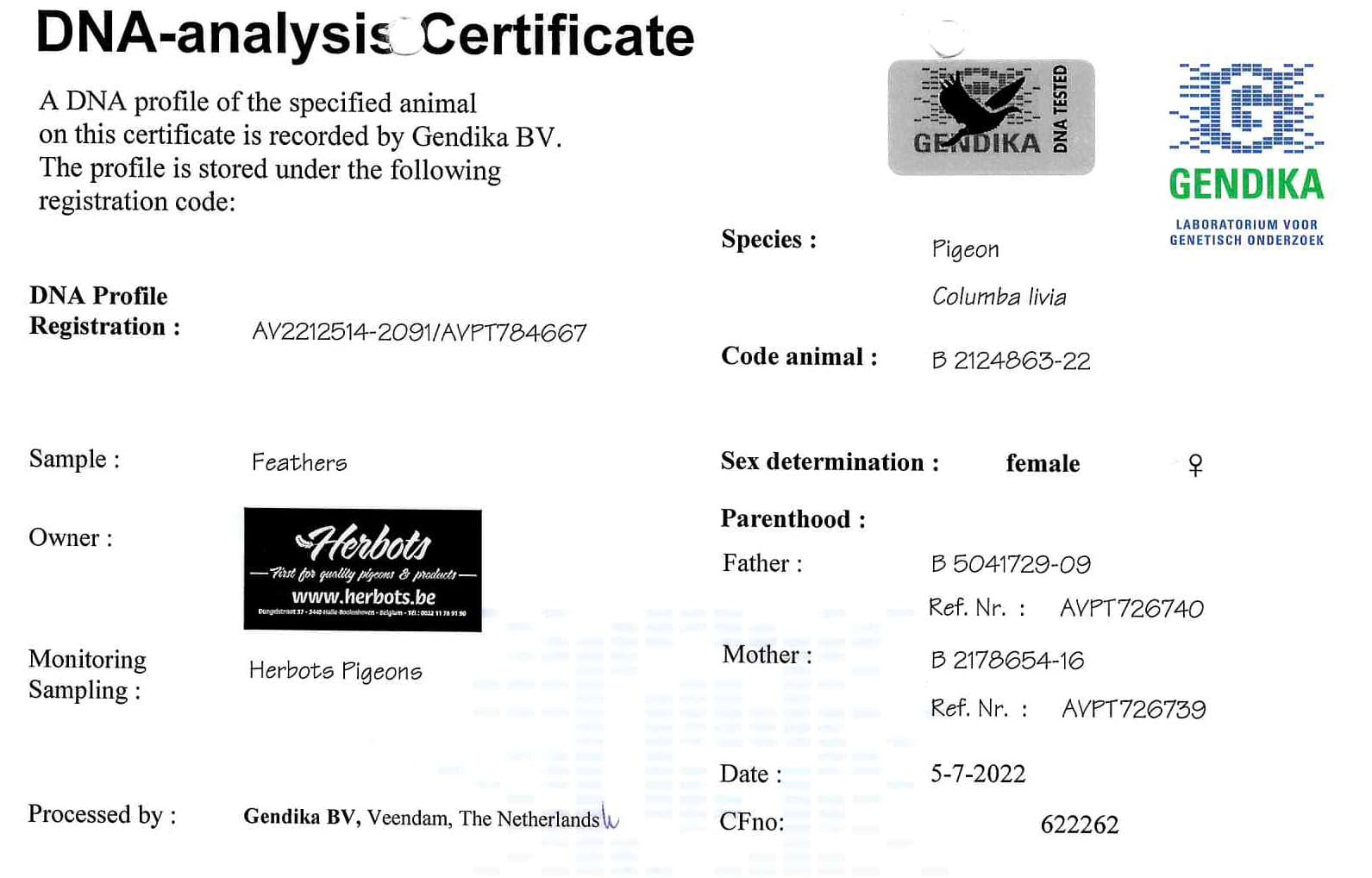 作育者: HERBOTS GEBR. 贺伯特兄弟
