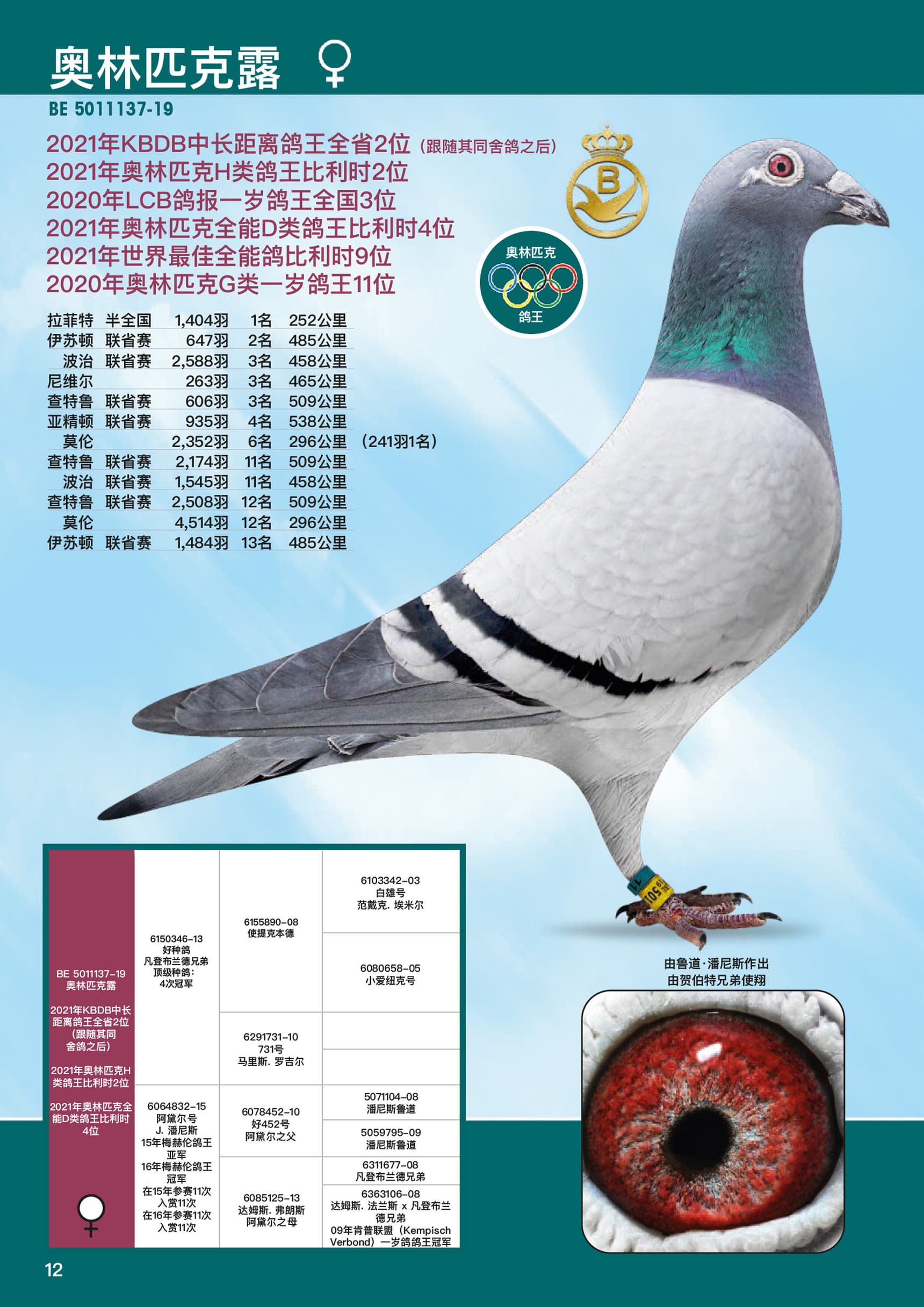 21年奥林匹克H类鸽王比利时2位