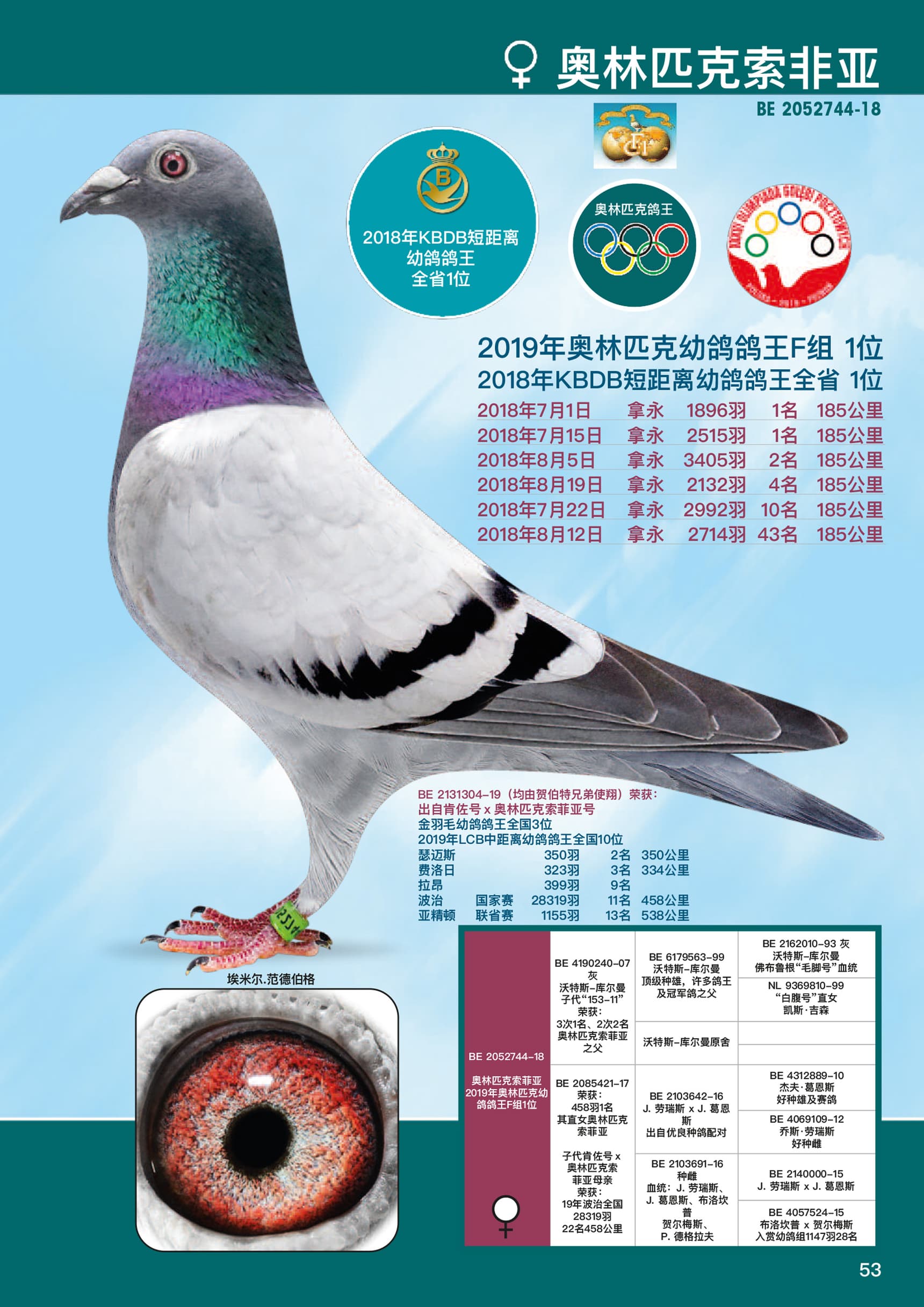 2020年奥林匹克F类幼鸽鸽王全国1位