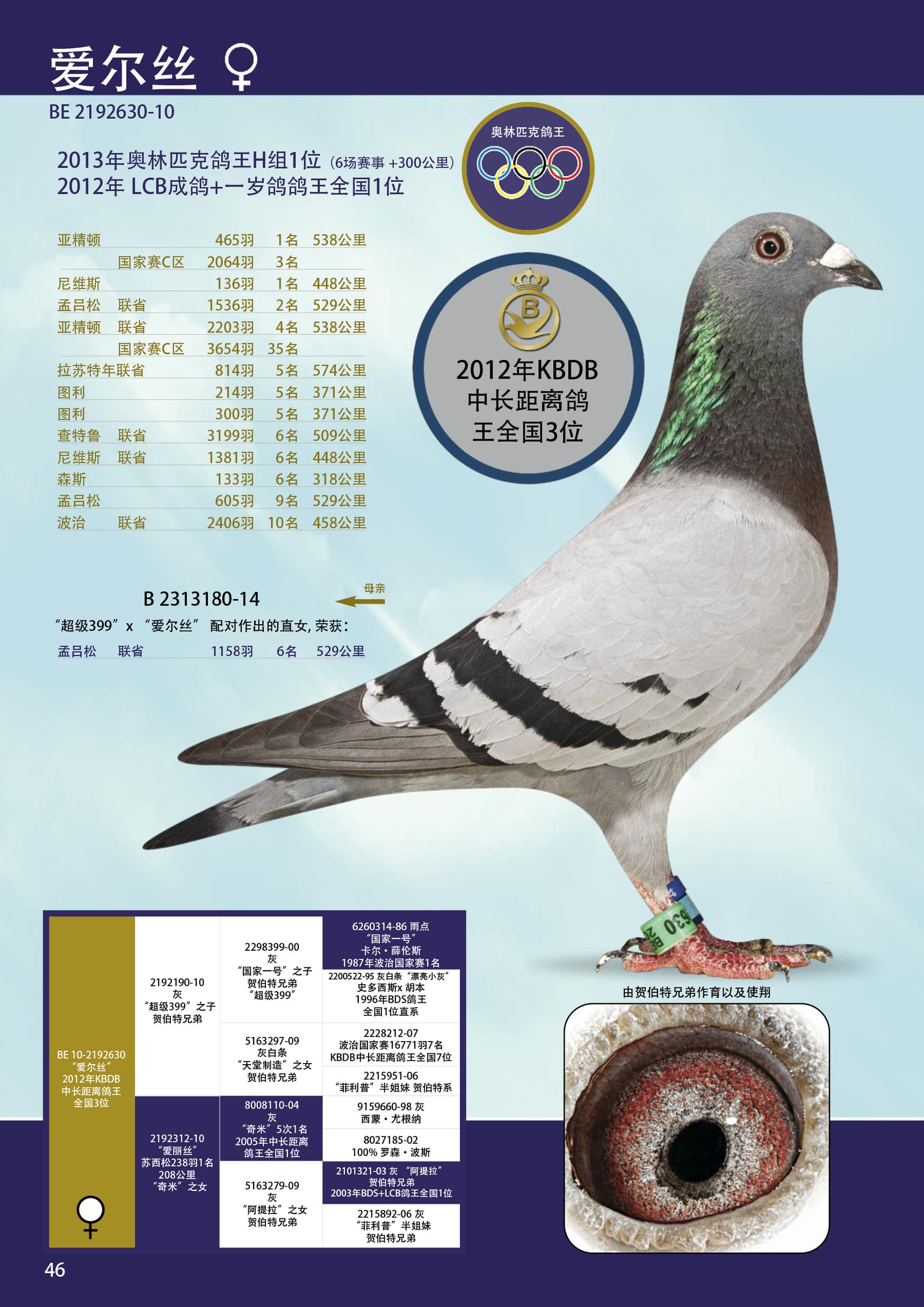 13年奥林匹克H类鸽王1位