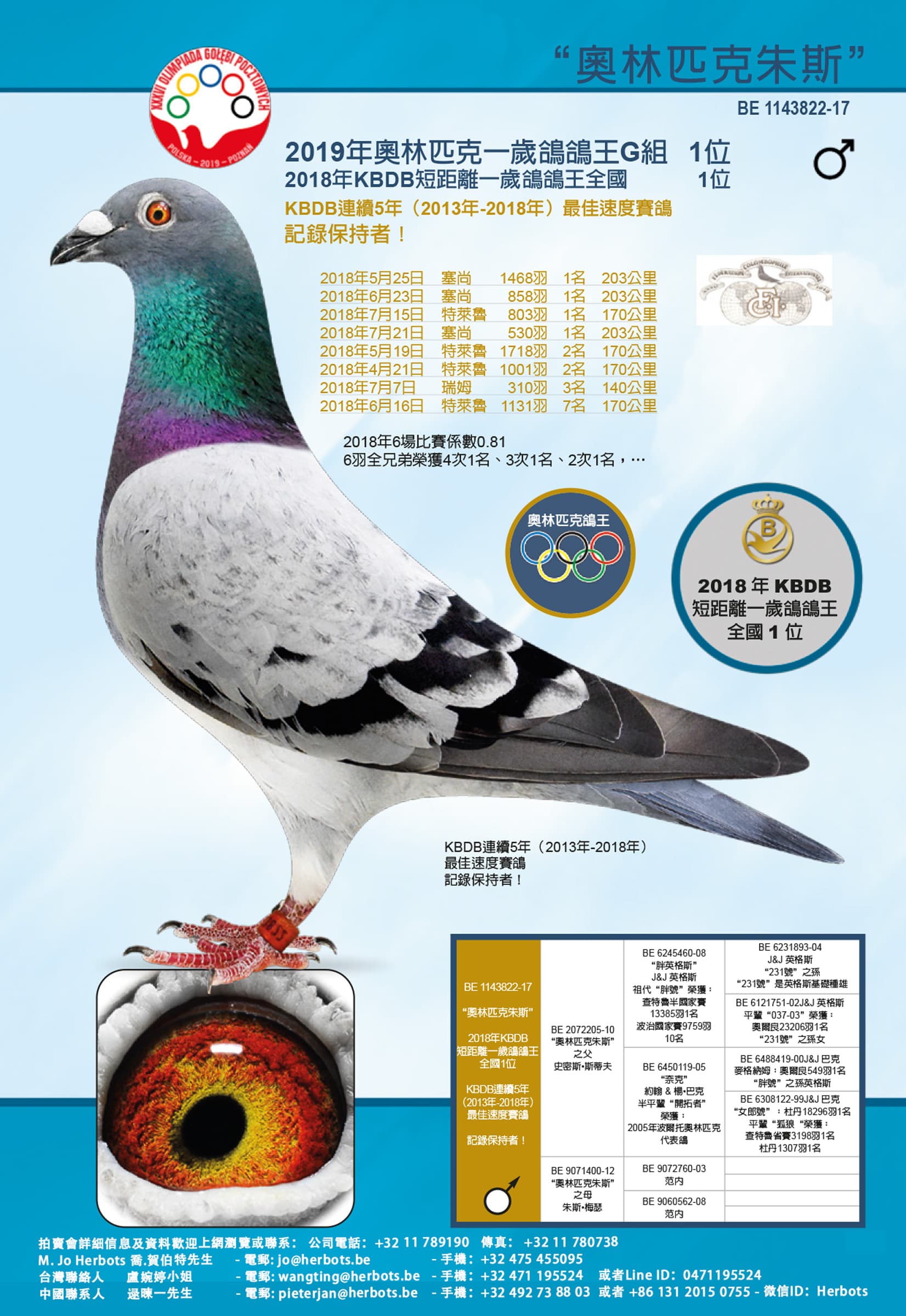 19年奥林匹克一岁鸽王G组冠军