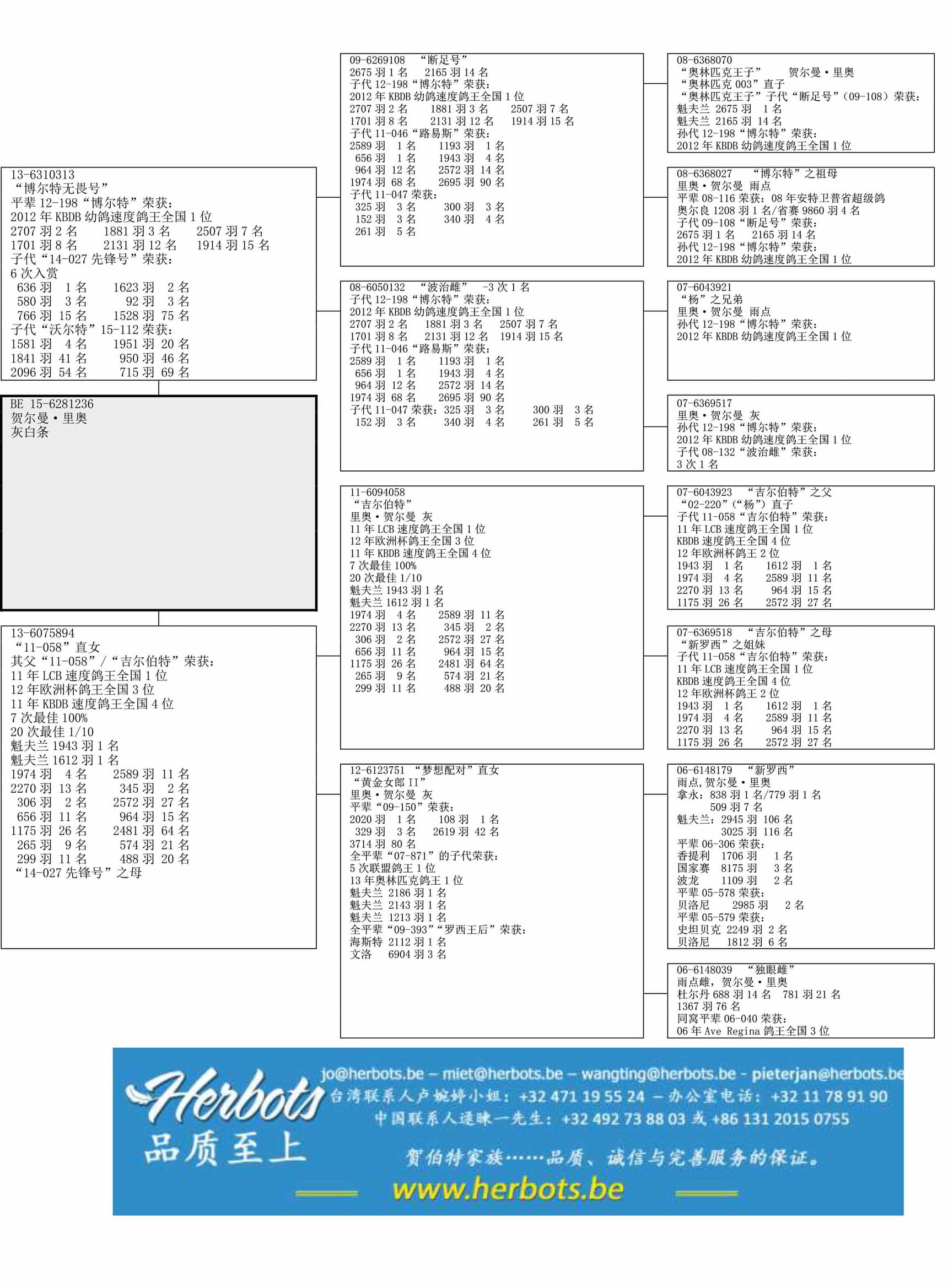 KBDB短距离鸽王全国4位 – 西欧国家杯欧洲鸽王全国3位 - 1,943羽1名 – 1,612羽1名) x “梦想配对直女” (“新罗西” x “独眼雌”直女) 直女