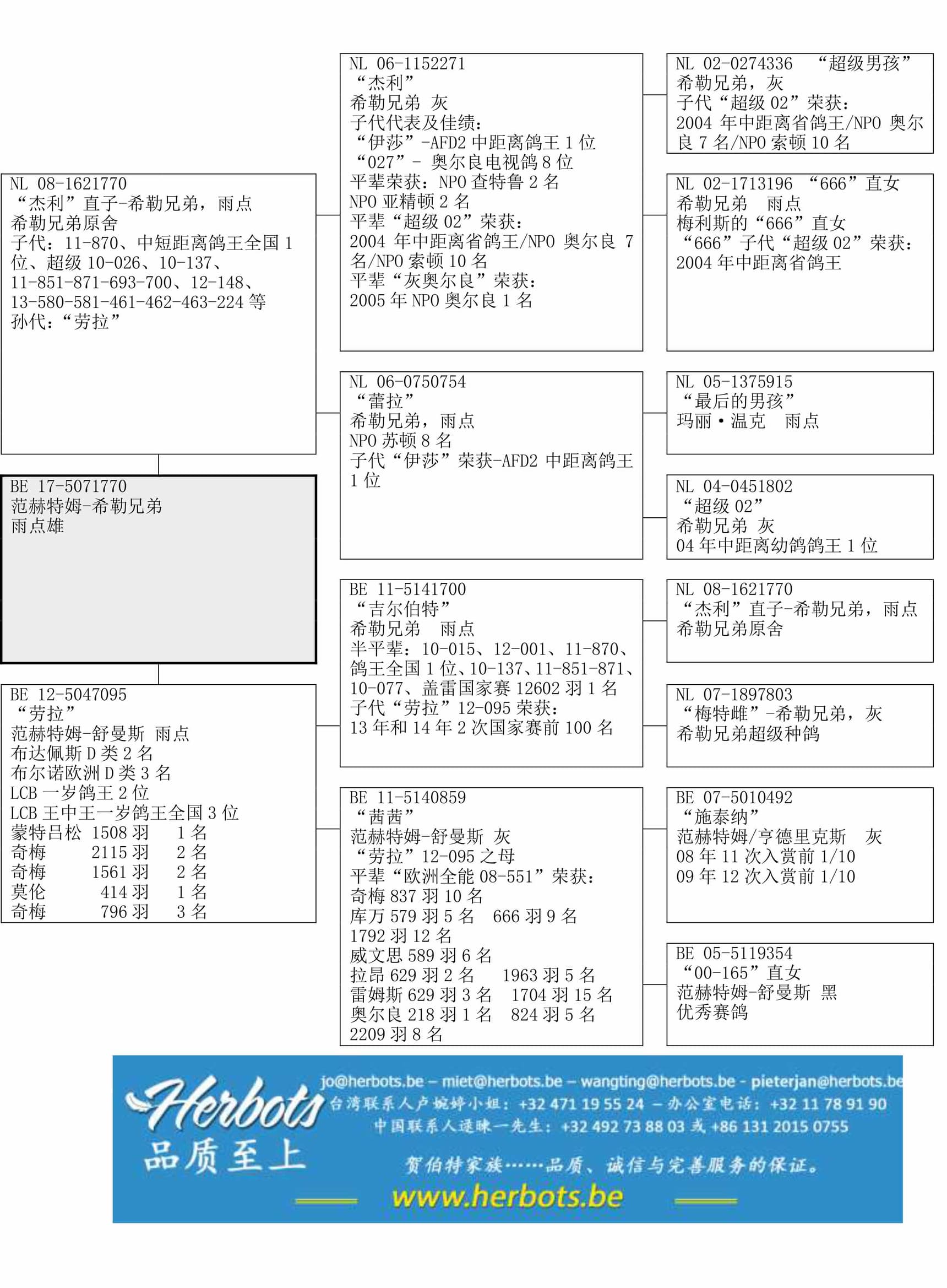 “杰尔森”之半姐妹中距离鸽王全国1位2014年布尔诺欧洲杯鸽王1位1,171羽 1名800羽 1名605羽 1名314羽 1名285羽 1名