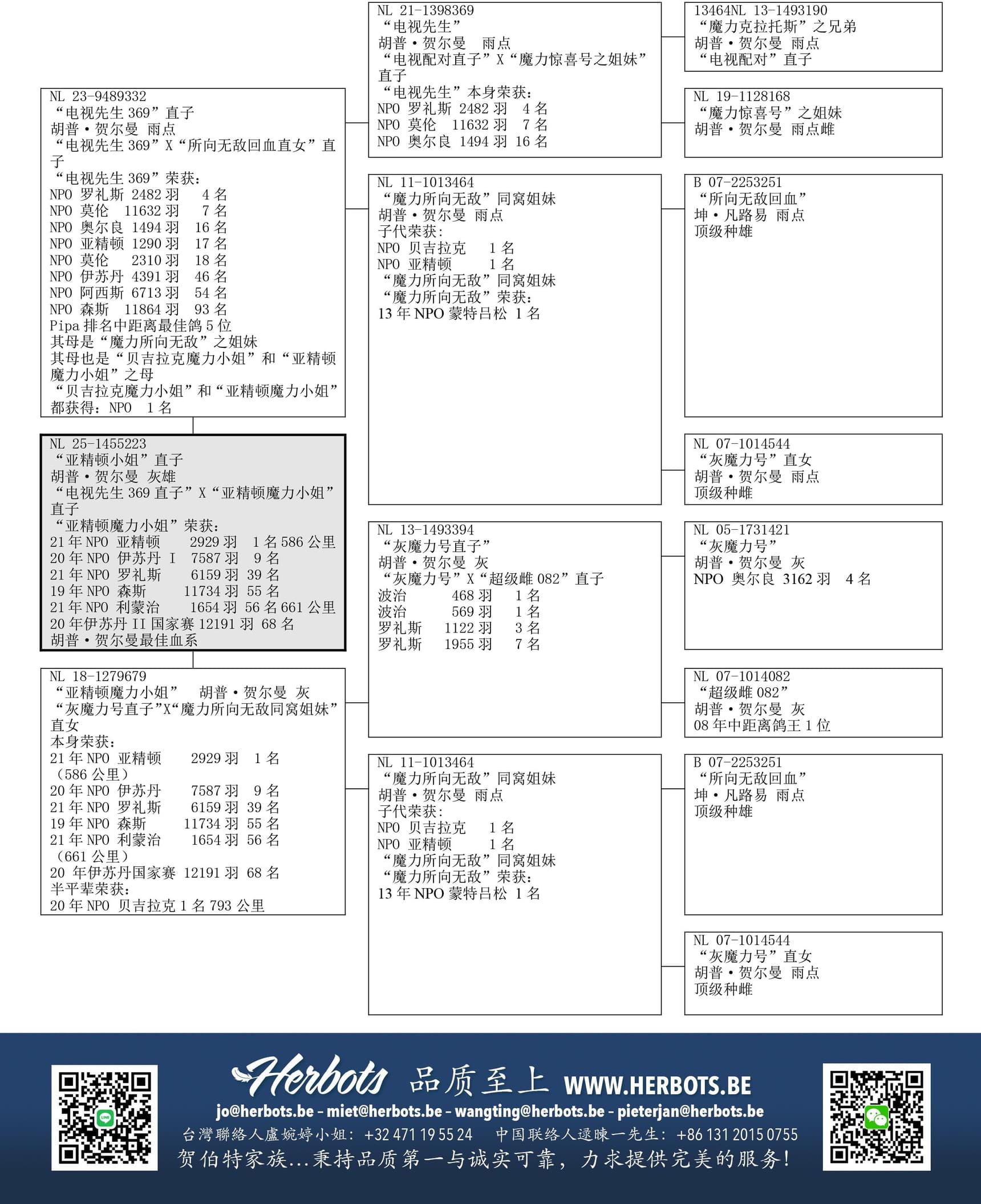 荣获: Pipa排名中/长距离最佳鸽荷兰5位
