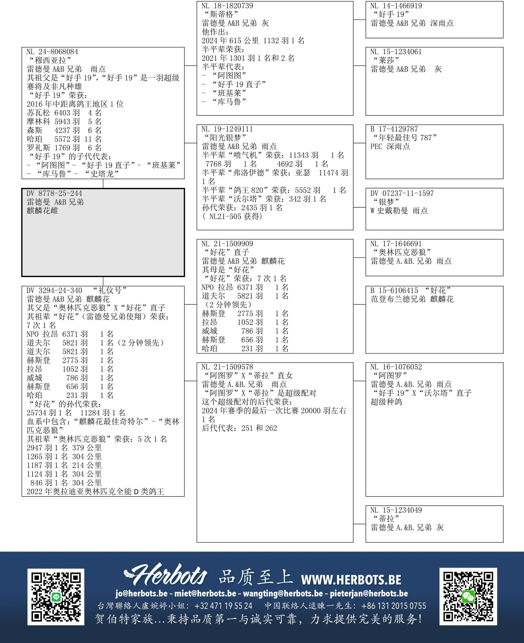 12次1名 - 曾孙代荣获:荷兰奥林匹克鸽王1位,