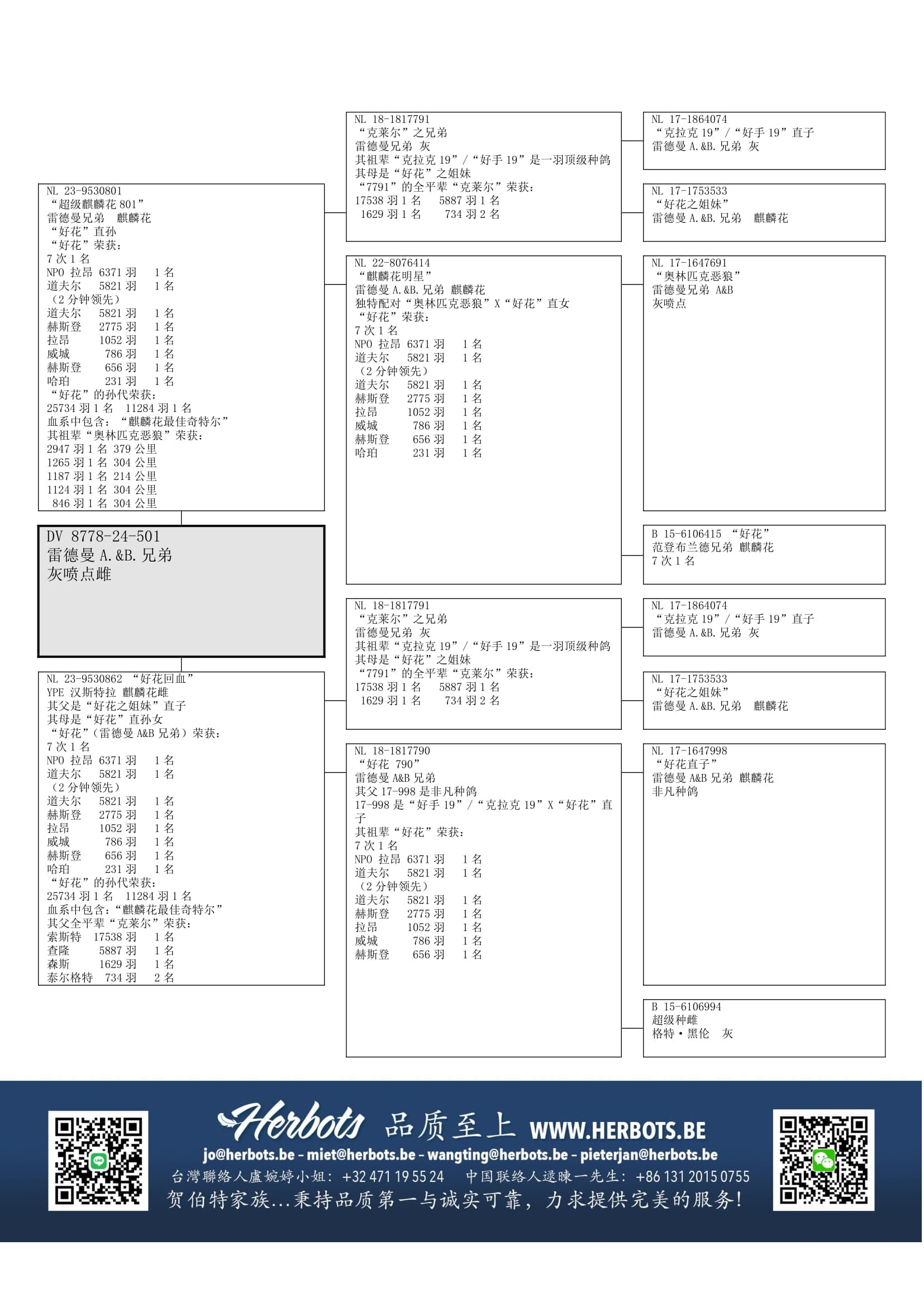 奥林匹克恶狼” (2,947羽1名 – 1,265羽1名- 1,187羽1名 – 1,124羽1名 – 846羽1名) x 世界铭鸽 “优秀麒麟花” (7 次1名;冠军种鸽)作出