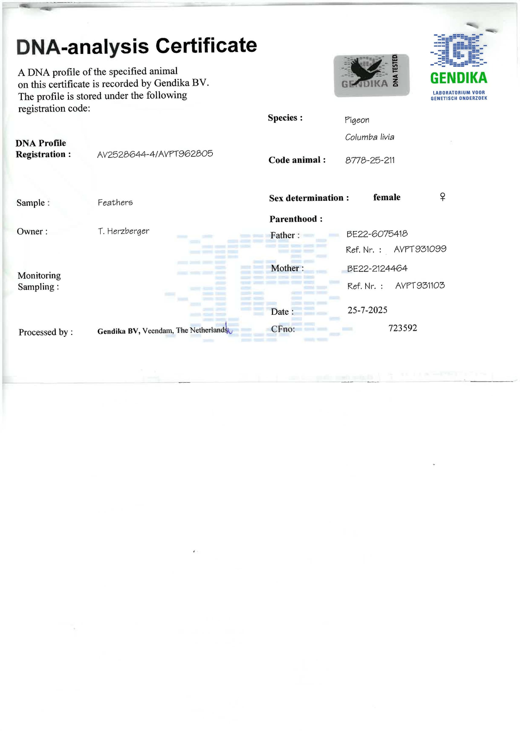 奥林匹克黎哥”(奥林匹克代表鸽以及 KBDB鸽王全国1位) x “奥林匹克戴安娜”  (波兹南奥林匹克D类鸽王以及9 次前10名) 作出