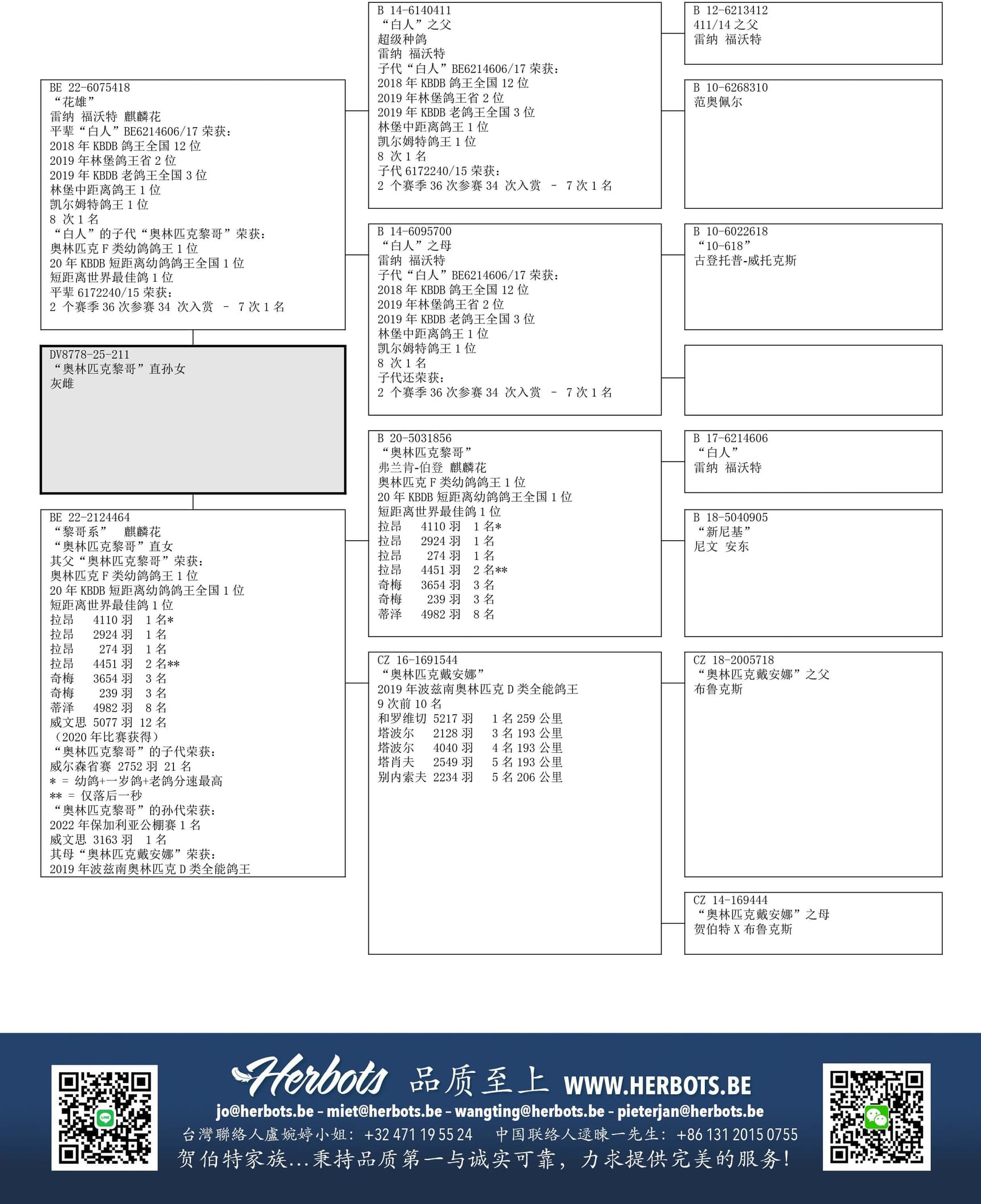 “奥林匹克黎哥”是一羽真正的超级种鸽,其孙代