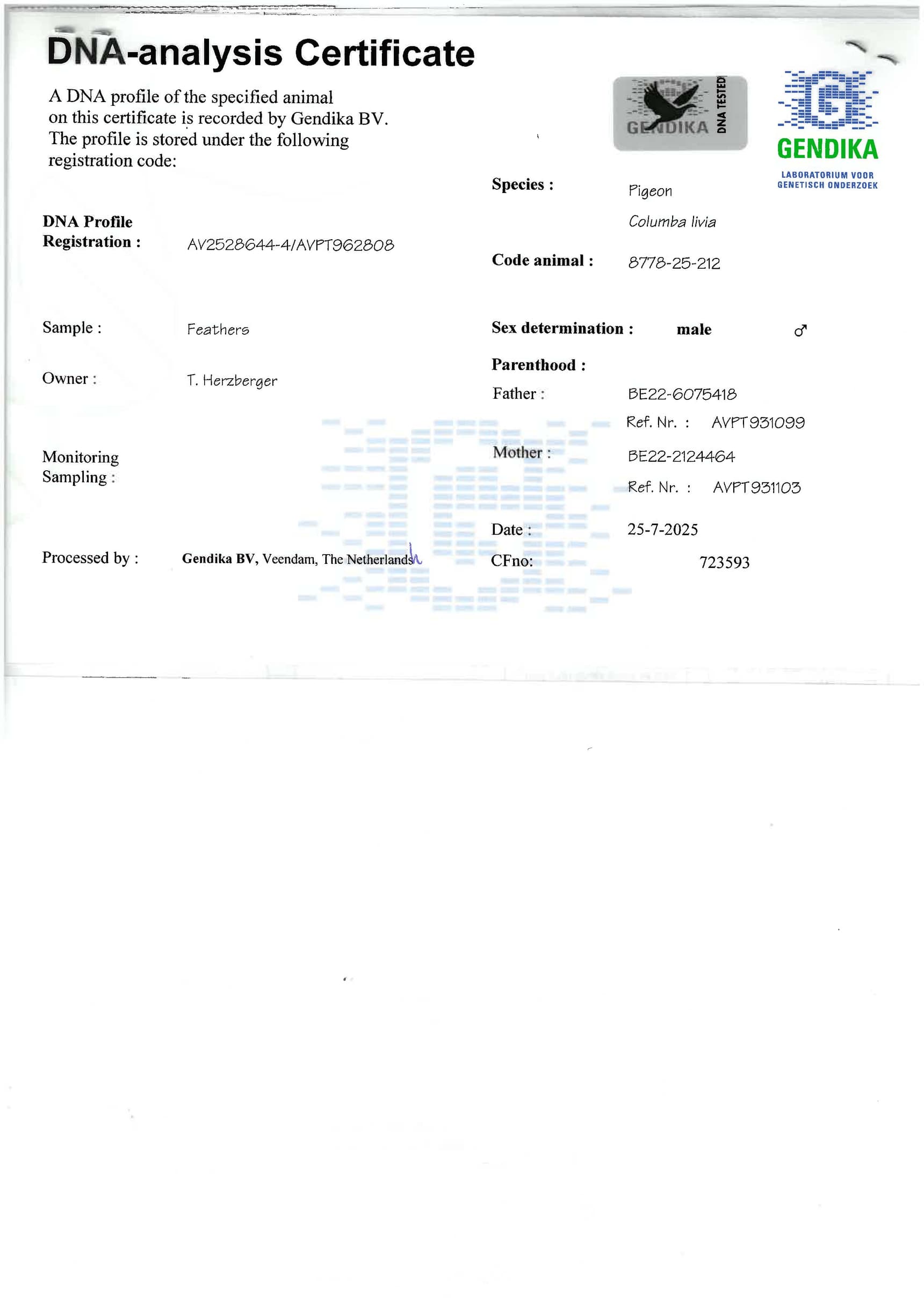 “奥林匹克黎哥”(奥林匹克代表鸽以及 KBDB鸽王全国1位) x “奥林匹克戴安娜” (波兹南奥林匹克D类鸽王以及9 次前10名) 作出