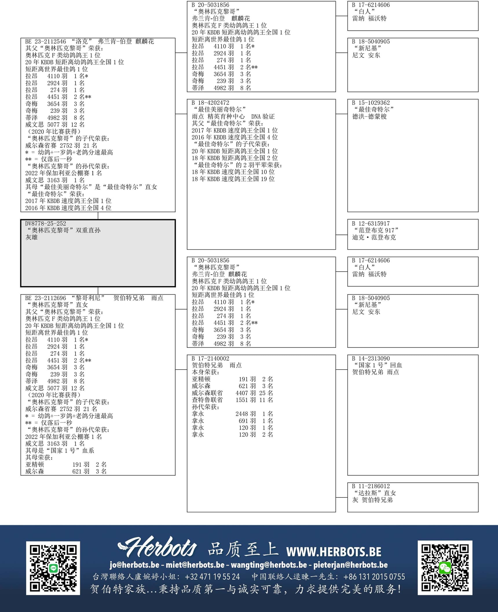 世界铭鸽“奥林匹克黎哥” B20-5031856双重直孙