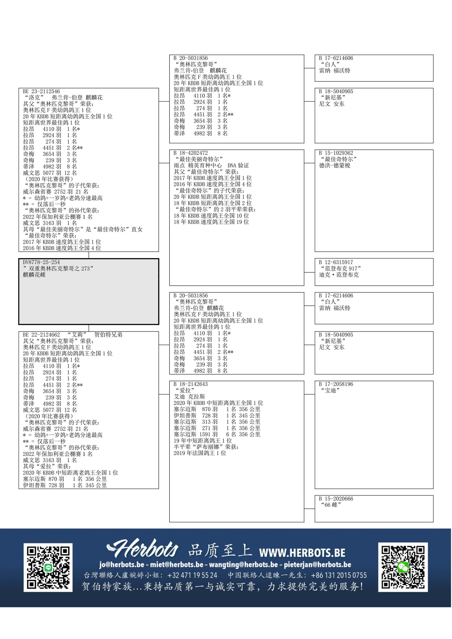 奥林匹克代表鸽以及KBDB鸽王全国1位