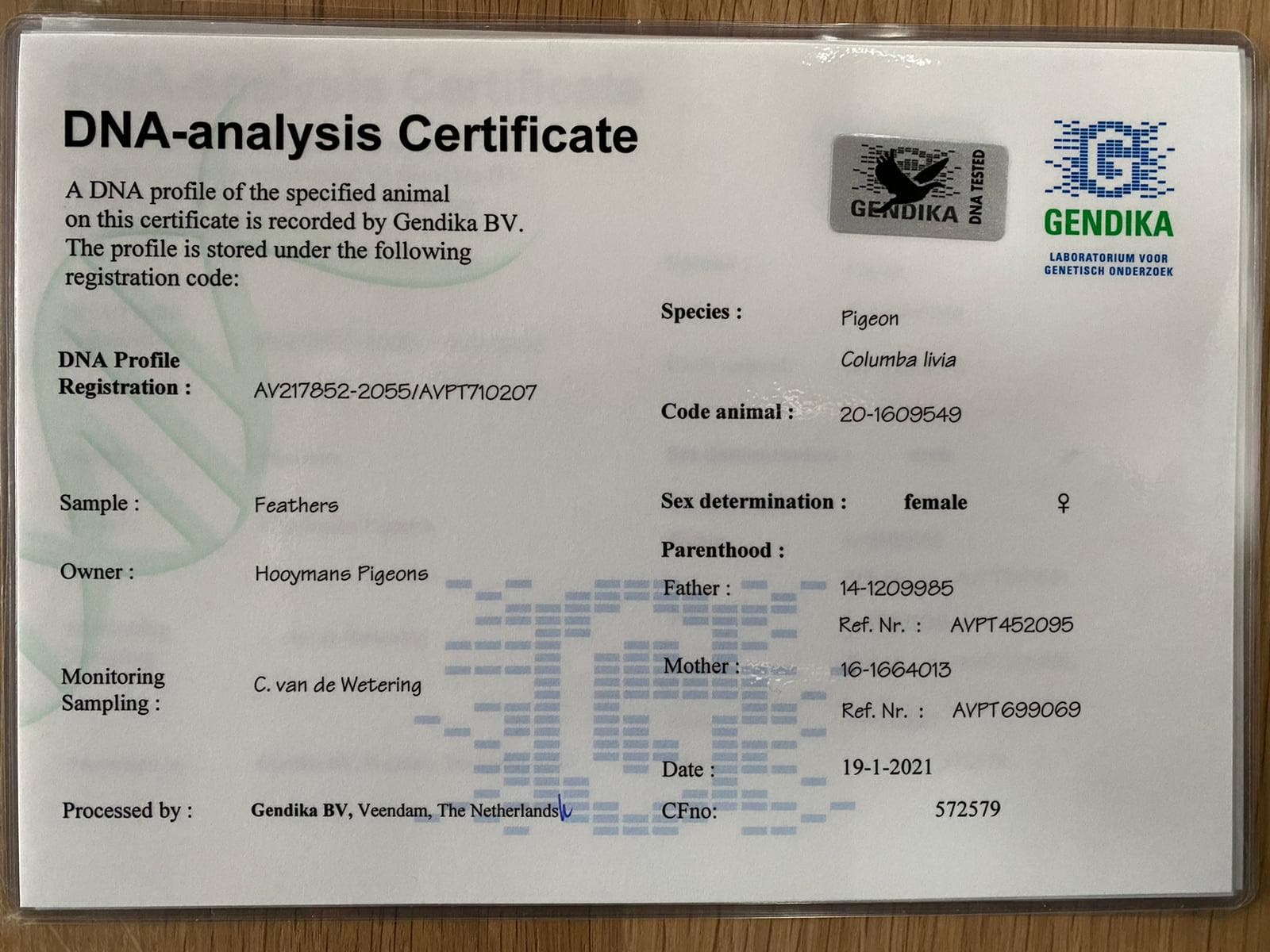 带DNA检验证书