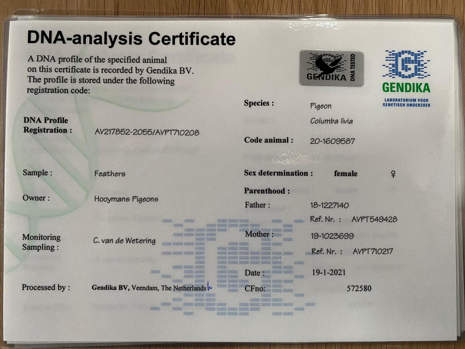 带DNA检验证书