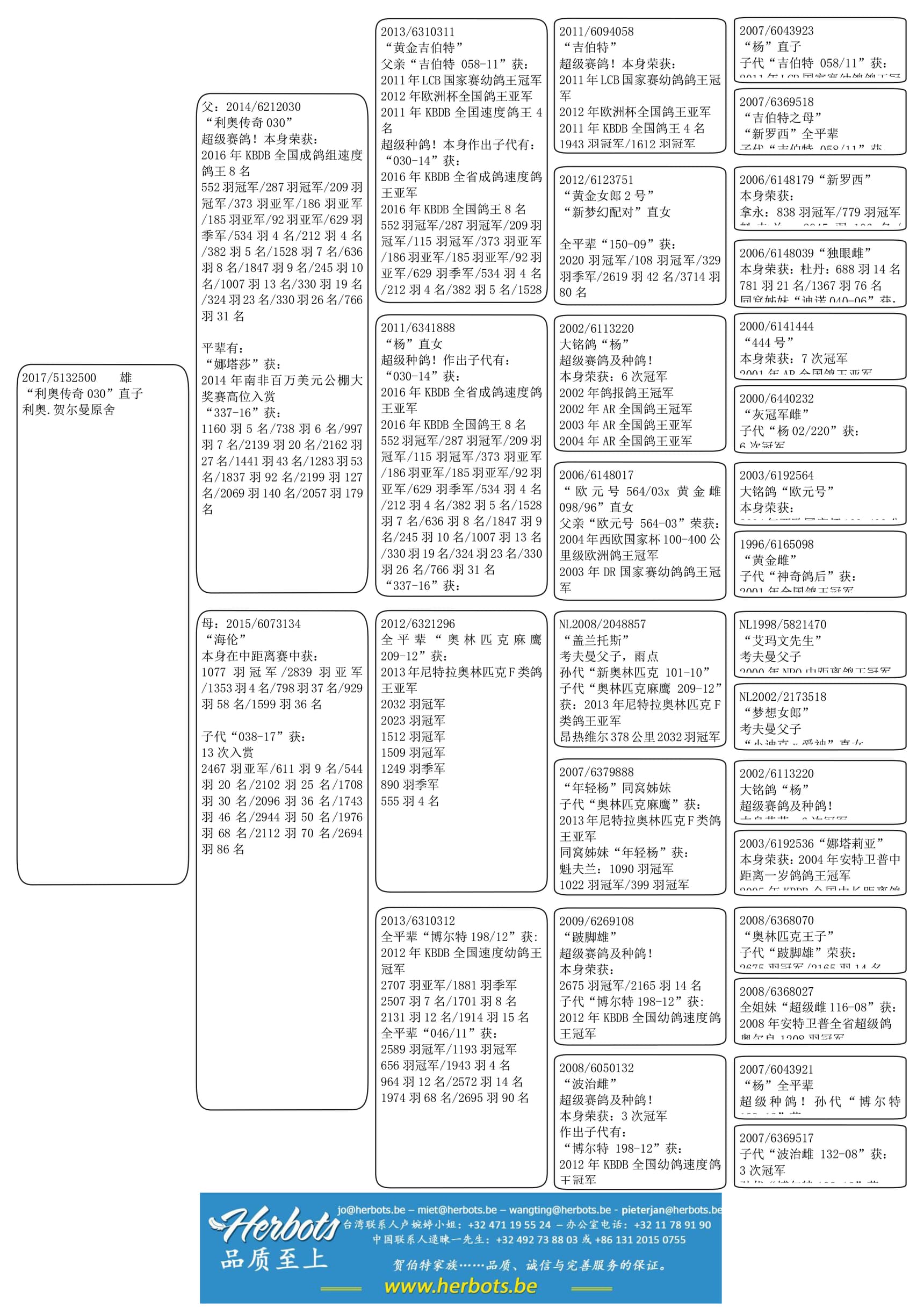 由“奥林匹克麻鹰全平辈” (“奥林匹克麻鹰”获: 2013年尼特拉奥林匹克F类鸽王亚军,2032羽冠军-2023羽冠军 -1512羽冠军-1509羽冠军-1249羽季军-890羽季军-555羽4名-等等) x “博尔特全平辈” (“博尔特”获: 2012年KBDB全国速度幼鸽王冠军)