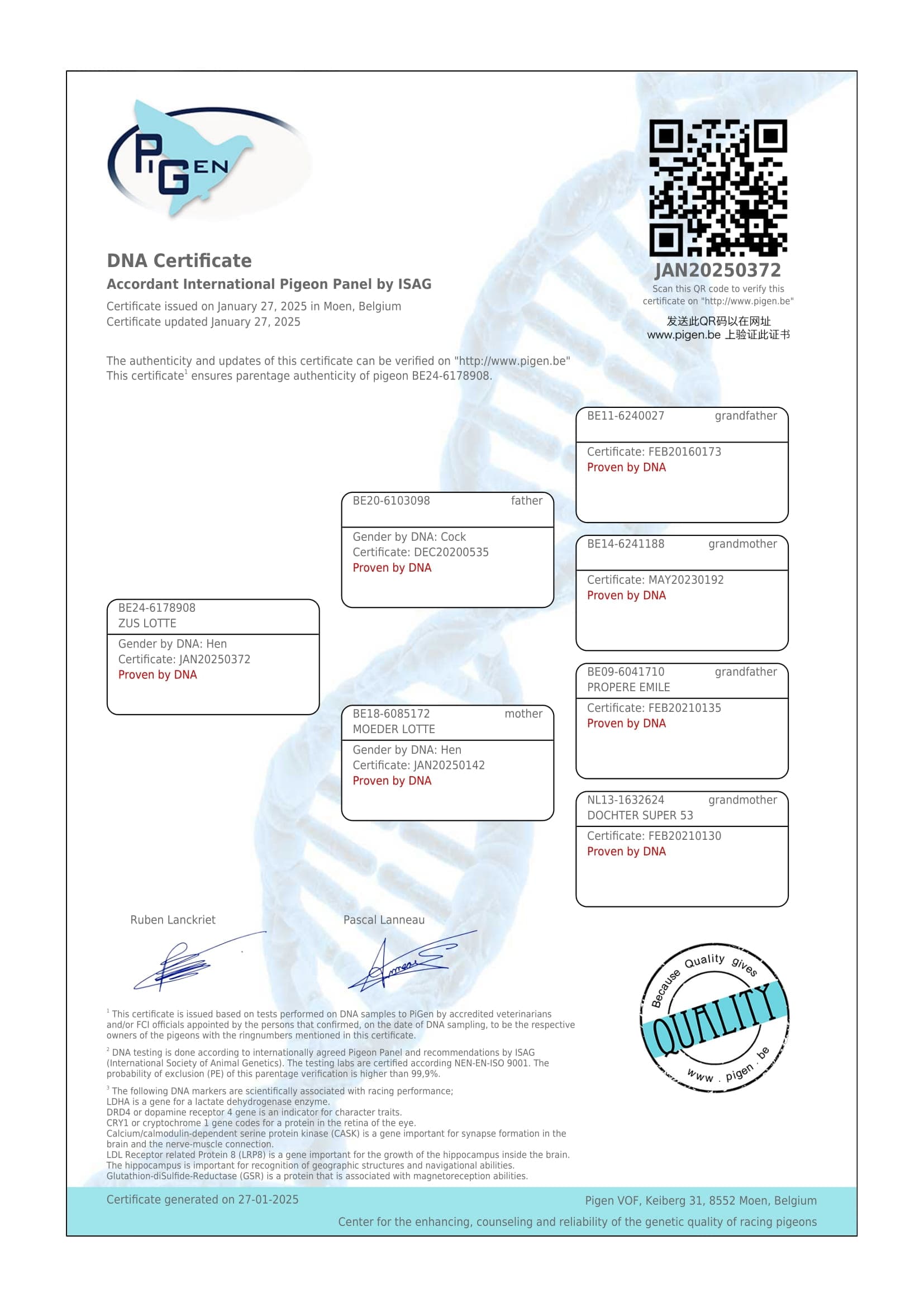 “安特卫普西部联盟”鸽王1位