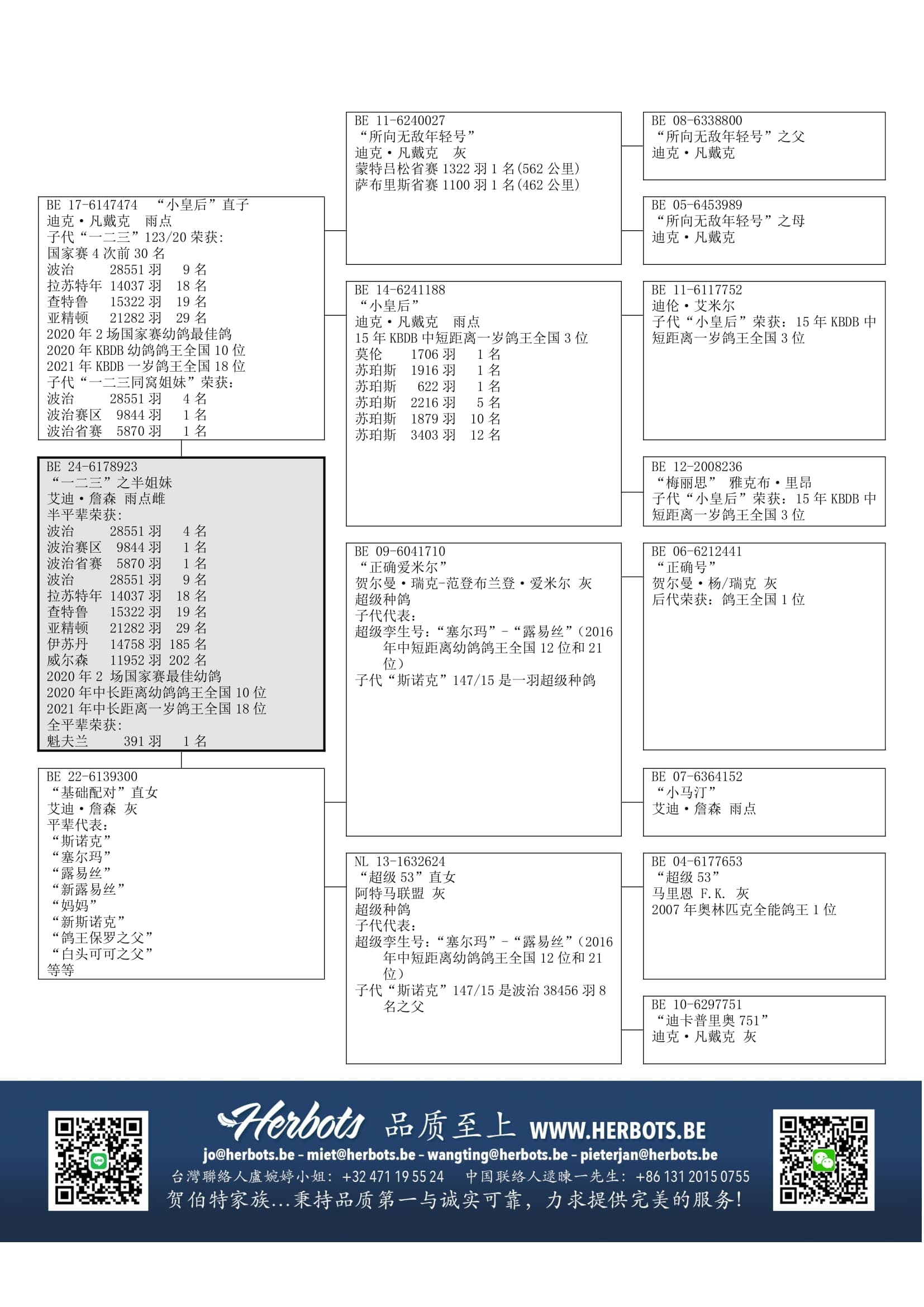 同父半平辈“一二三”(顶级雌鸽)荣获: