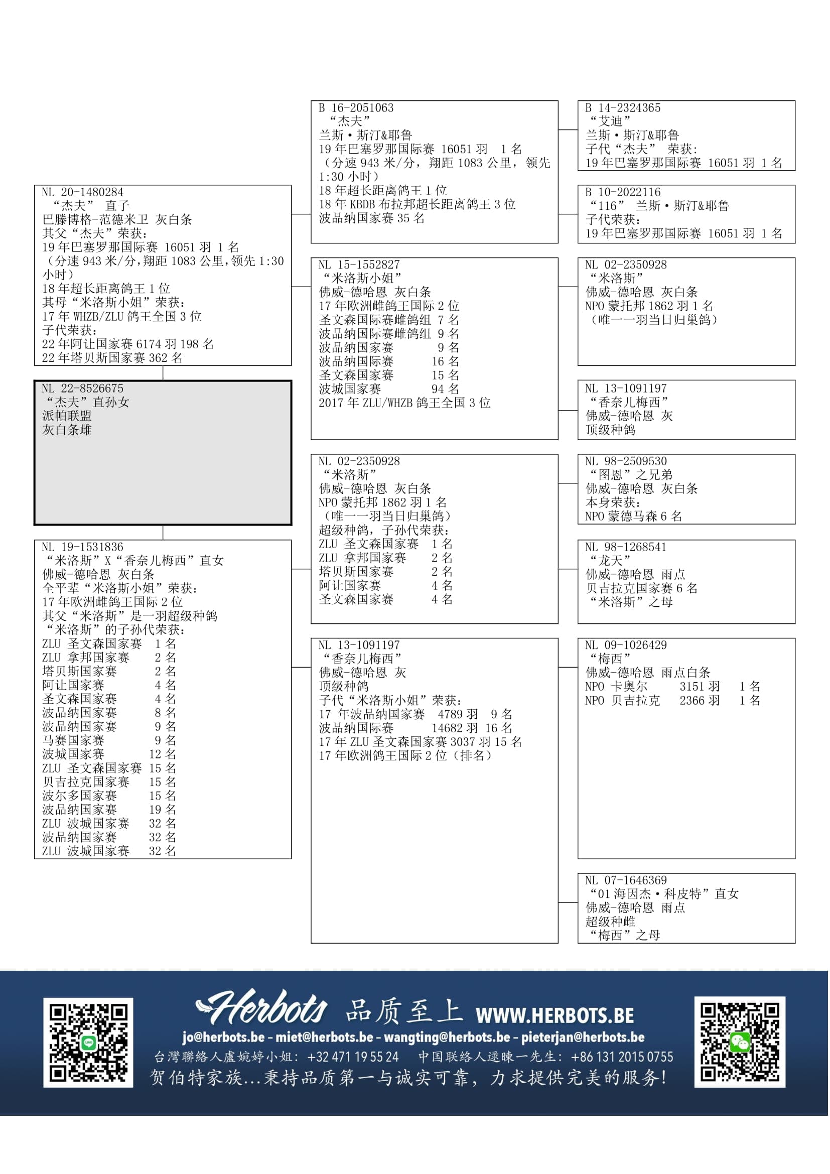 17年国际雌鸽王2位 – 2017年ZLU/WHZB鸽王全国3位