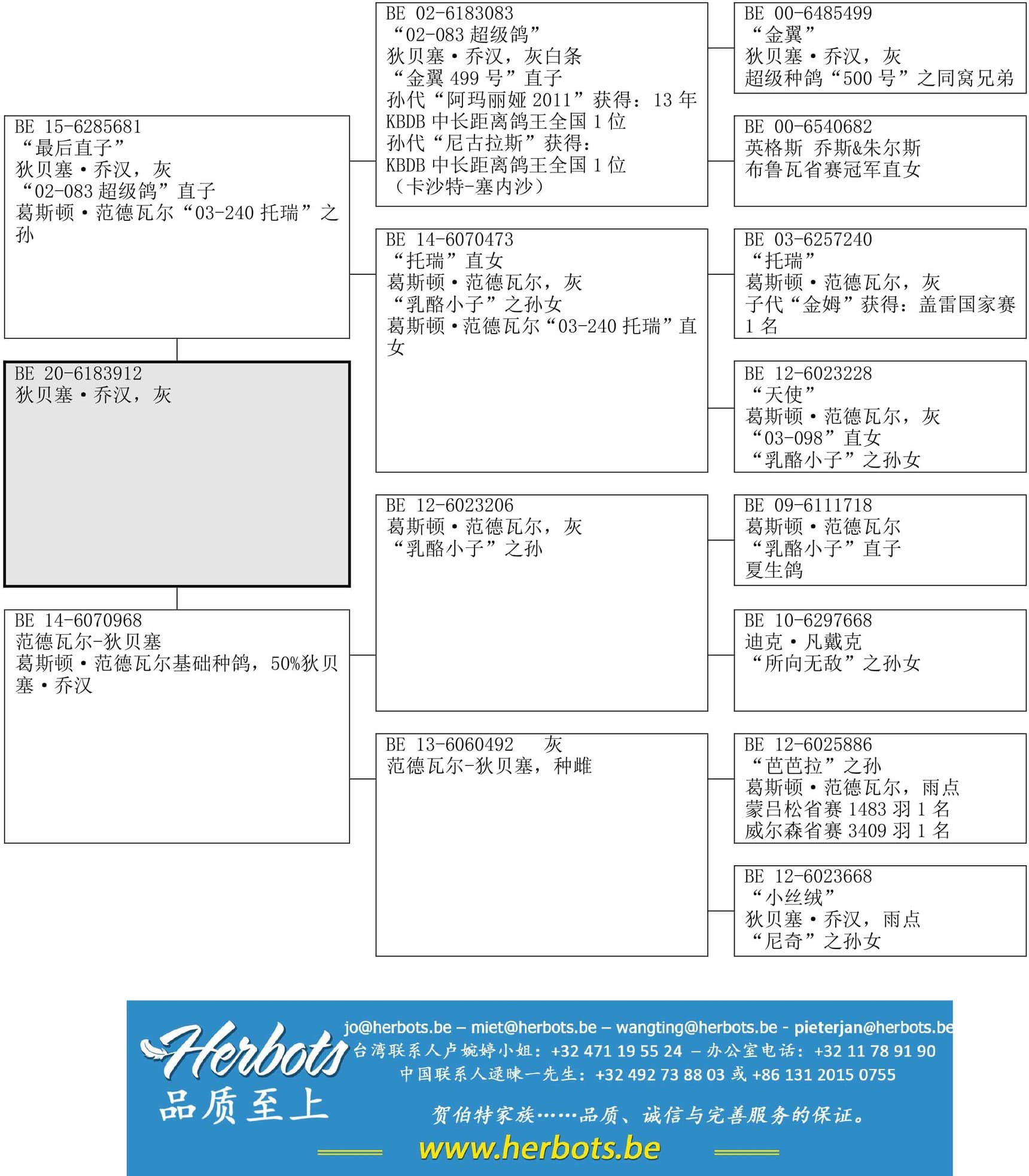“最后直子”直子,“02-083超级鸽”最后一羽儿子“02-083超级鸽”是“金翼”直子,“金翼”之孙代代表及佳绩:“阿玛丽娅”获得:11年中长距离鸽王全国1位“尼古拉斯”获得:13年中长距离鸽王鸽全国1位
