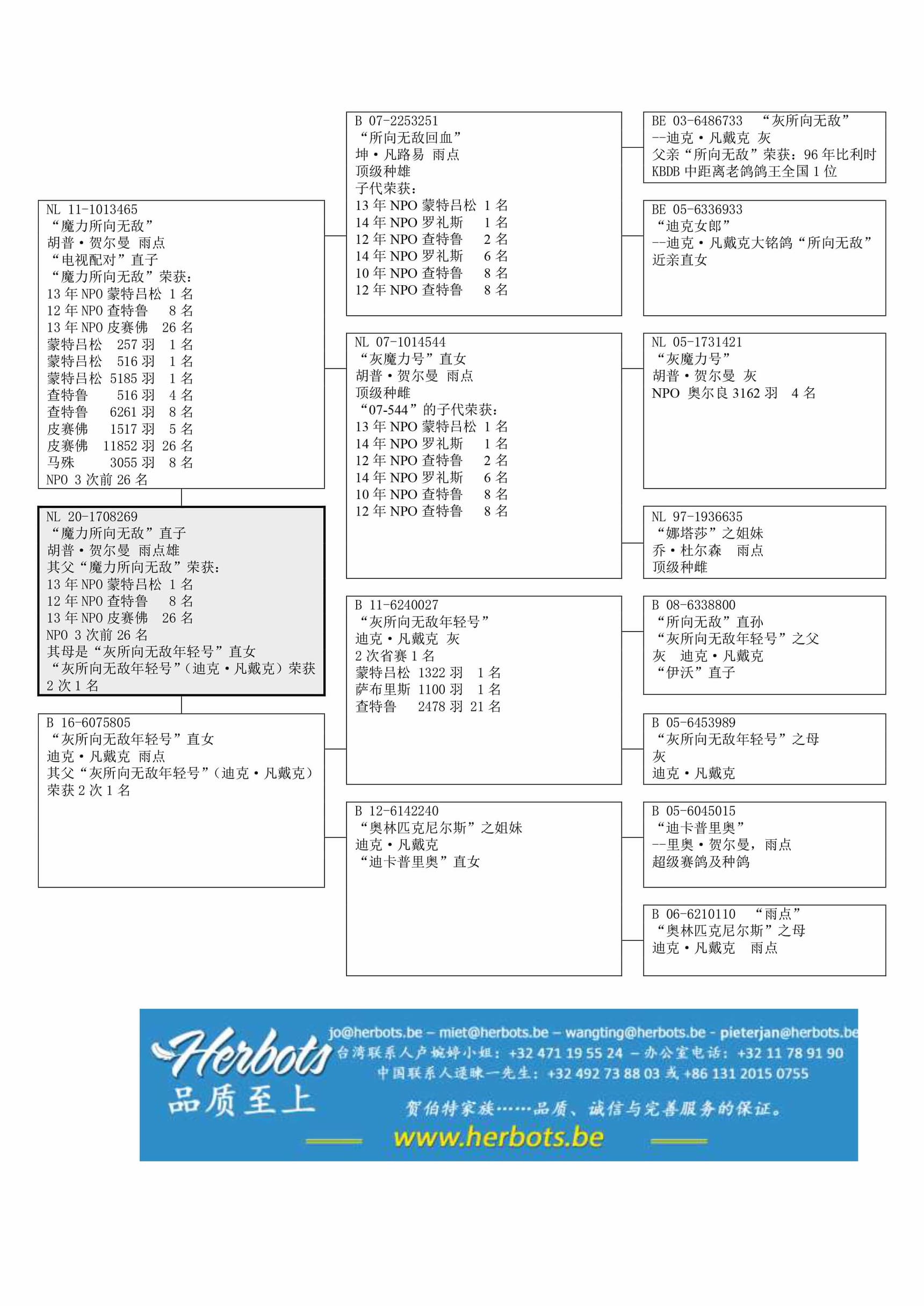 半平辈“鸽王 188”荣获: 19年韦福林堡组度鸽王3位5 次前10名其父“魔力所向无敌”荣获: NPO 蒙特吕松 5,185羽1名 - NPO 查特鲁 6,261羽8名 – NPO 皮赛佛 11,852羽26名