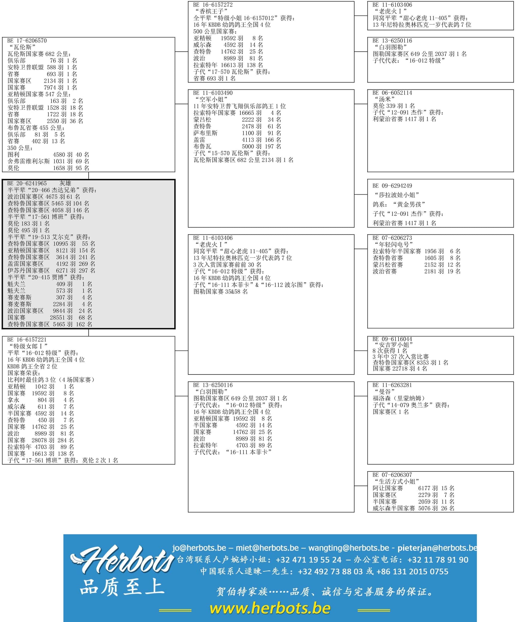 “香槟王子” (全平辈获得:KBDB幼鸽鸽王全国4位) x “空军小姐” (拉索特年国家赛16665羽4名) 作育直子