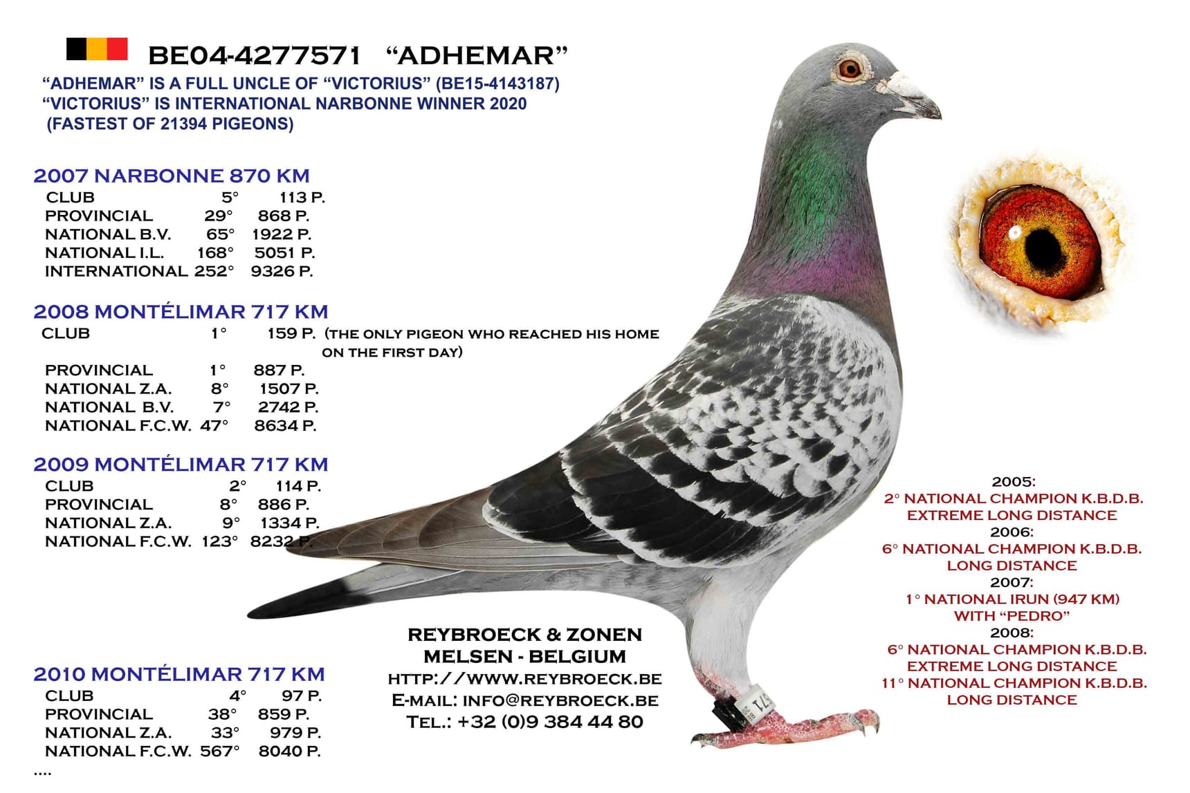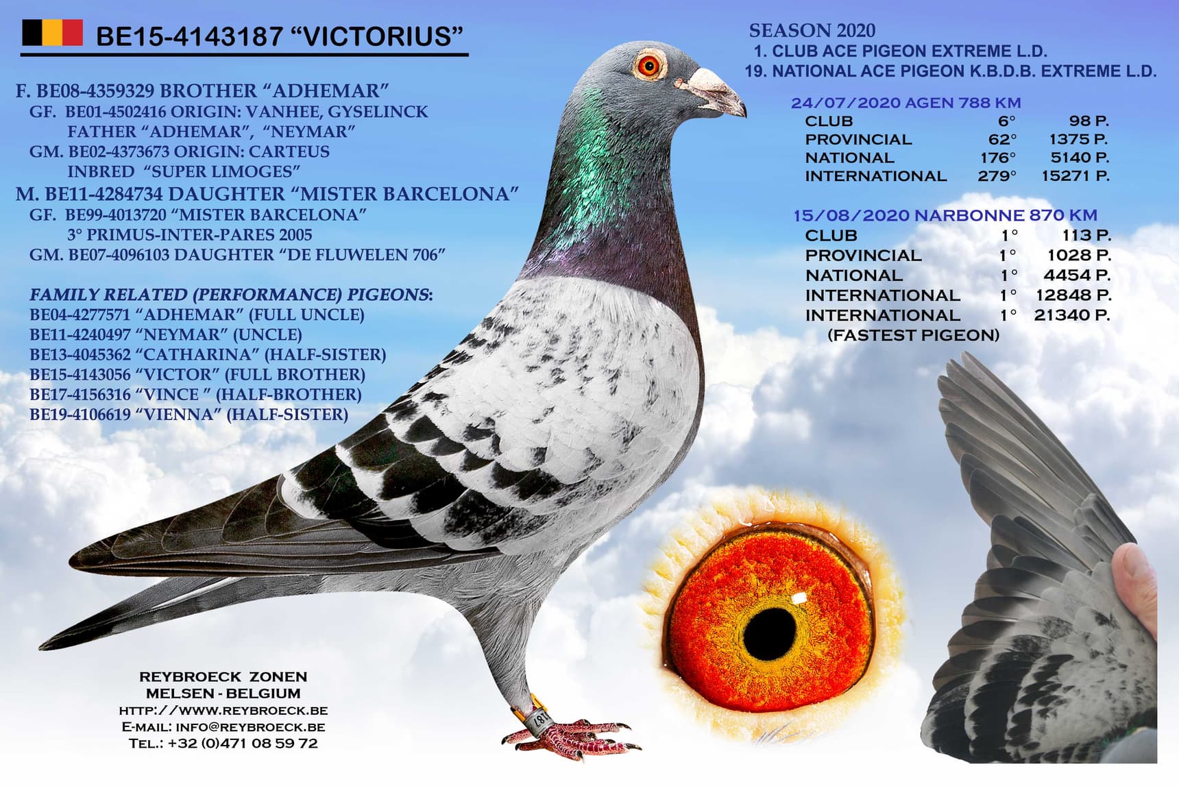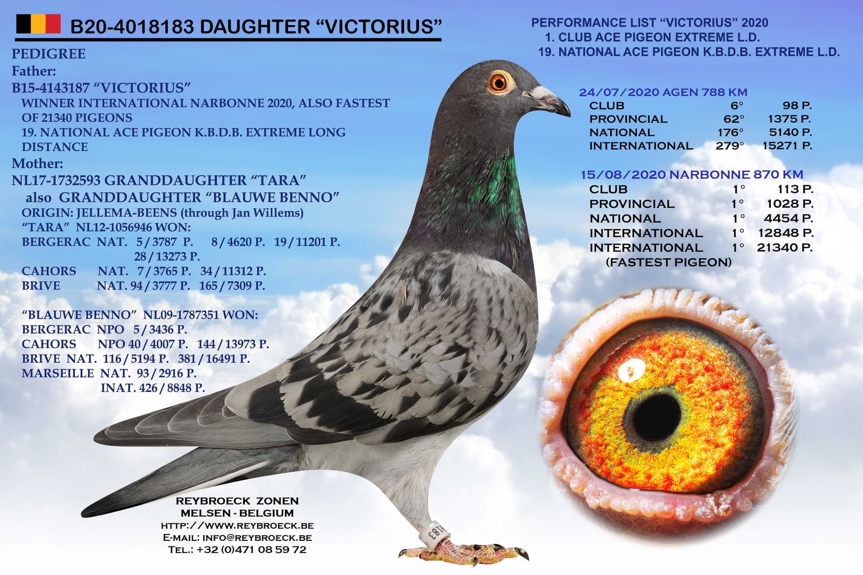 鸽系: 耶勒-耶勒玛 (“丽卡” x “灰本诺” x “塔拉”) x 阿里安.宾斯