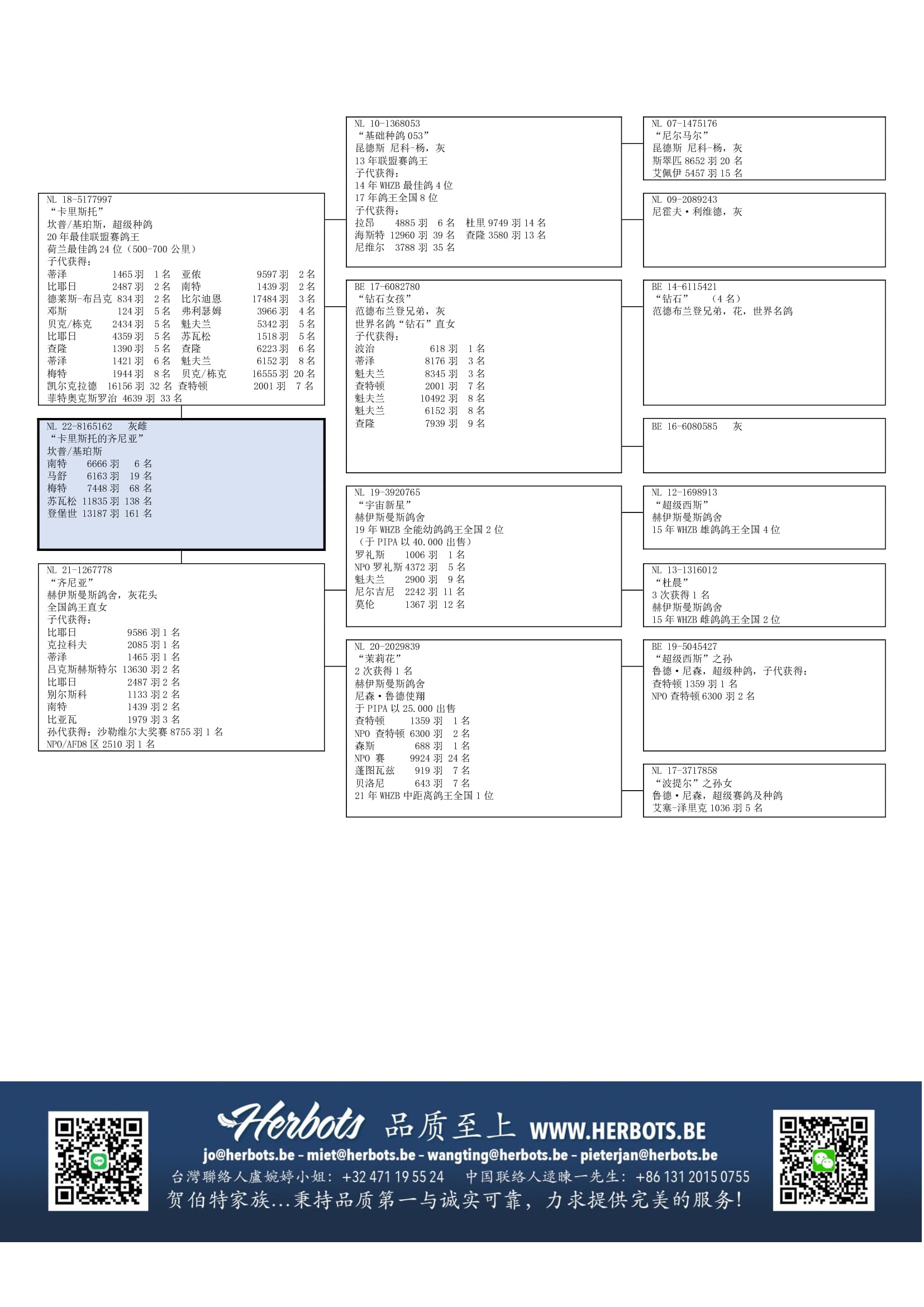 20年联盟赛鸽王1位;荷兰最佳鸽24位(500-700公里)