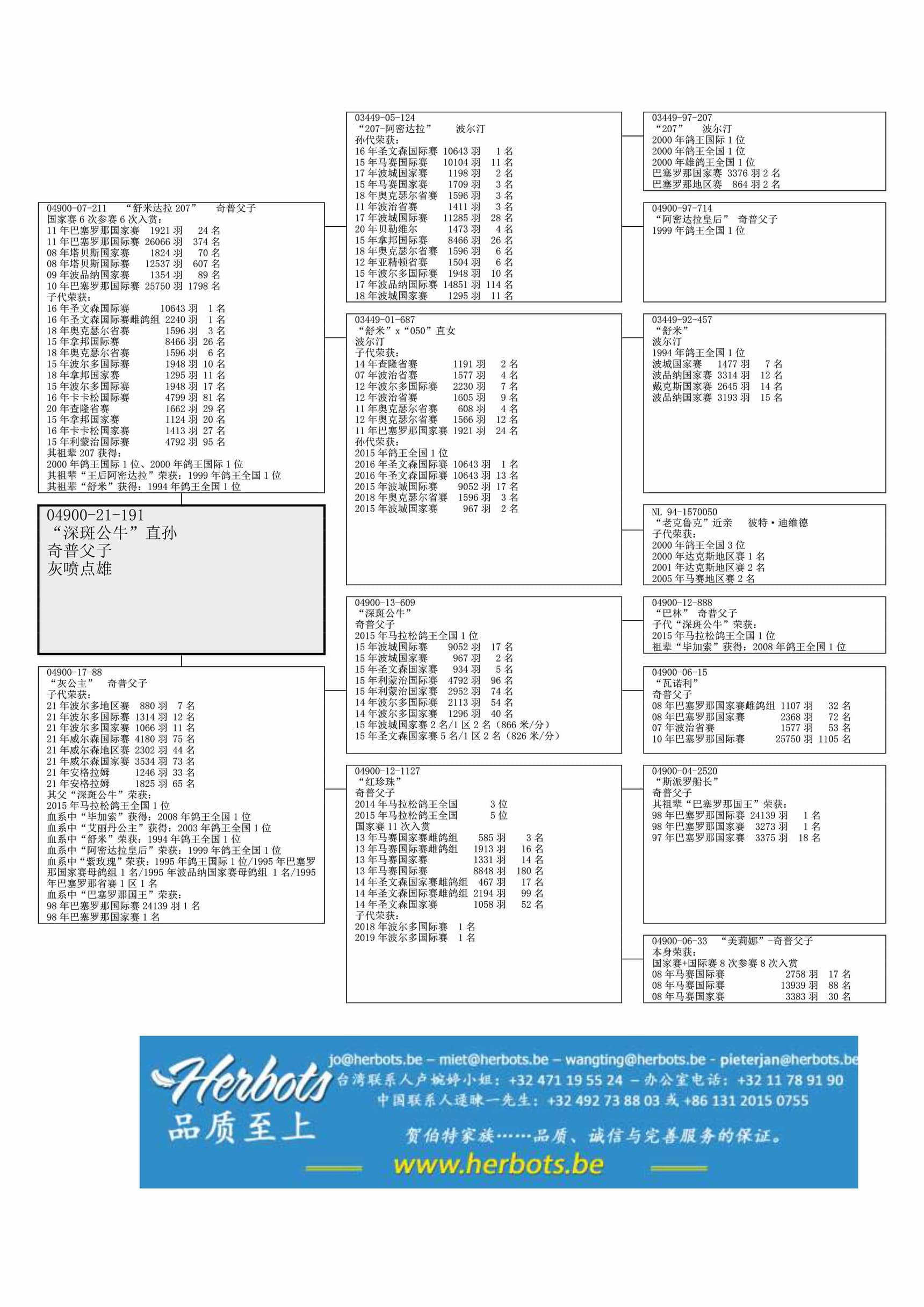 “深斑公牛” (15年国际赛鸽王全国1位– 波城国际赛 9,052羽17名– 圣文森国家赛 934羽5名– 利蒙治国际赛 4,792羽96名 - 波尔多国际赛 2,113羽54名) x“红珍珠” (2014年马拉松雌鸽王全国3位– 2015年马拉松雌鸽王全国5位) 直女
