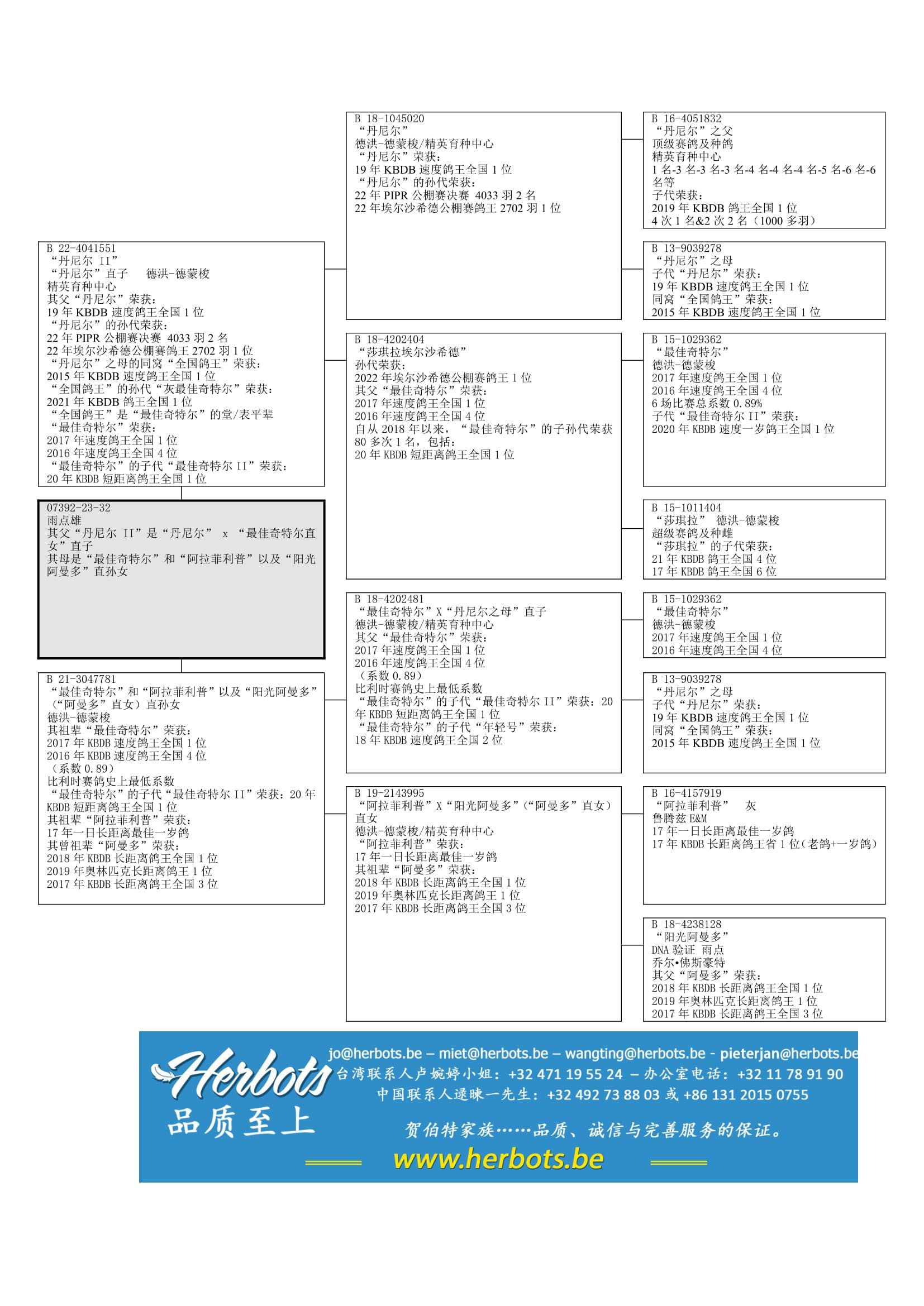 由“最佳基特尔”(KBDB全国速度鸽王冠军)x “夏奇拉”(“KBDB全国鸽王4名+6名之母”)