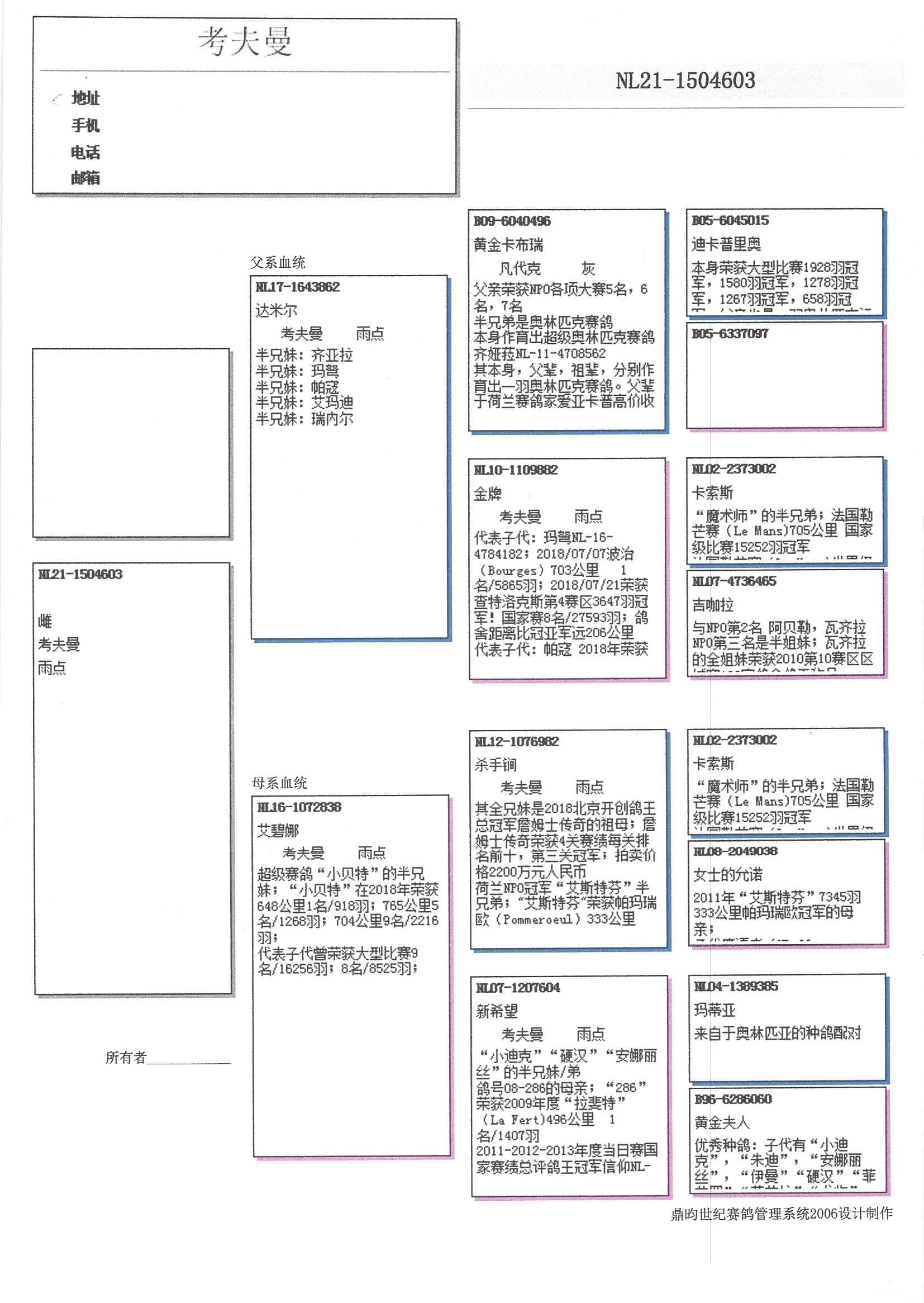 “玛弩”: NPO 查特鲁国家赛4区 3,647羽1名 - 分速19,192羽1名- NPO 波治国家赛4区 5,877羽1名 – 森斯 1,069羽1名
