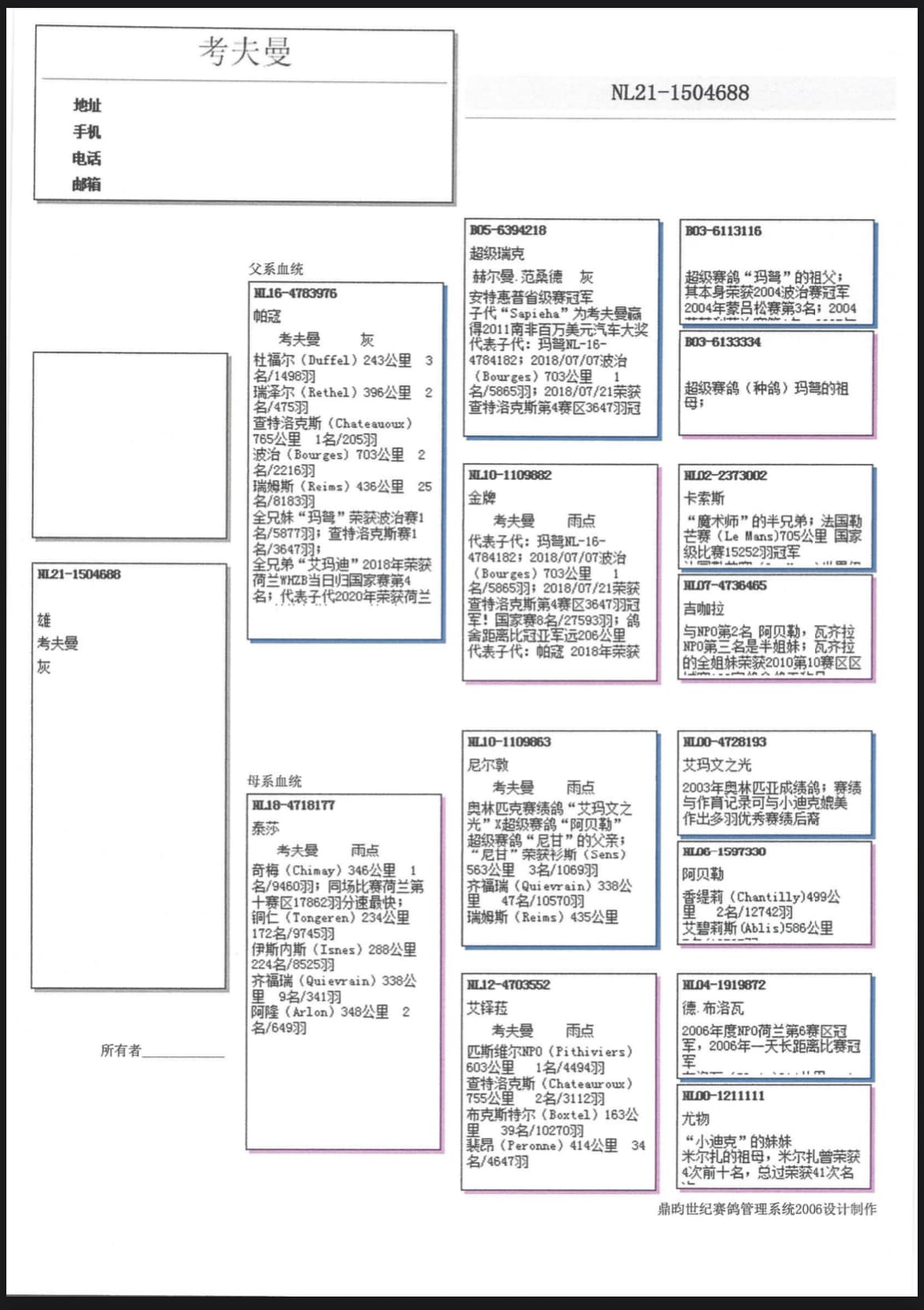 “超级瑞克” (荣获省赛2 次1名;子代代表:“玛弩”, “艾玛蒂”, “萨皮耶”等等) x“金牌” (子代代表:“玛弩” , “帕寇”,  “艾玛蒂”. “卡索斯” x “吉咖拉”直女) 作出