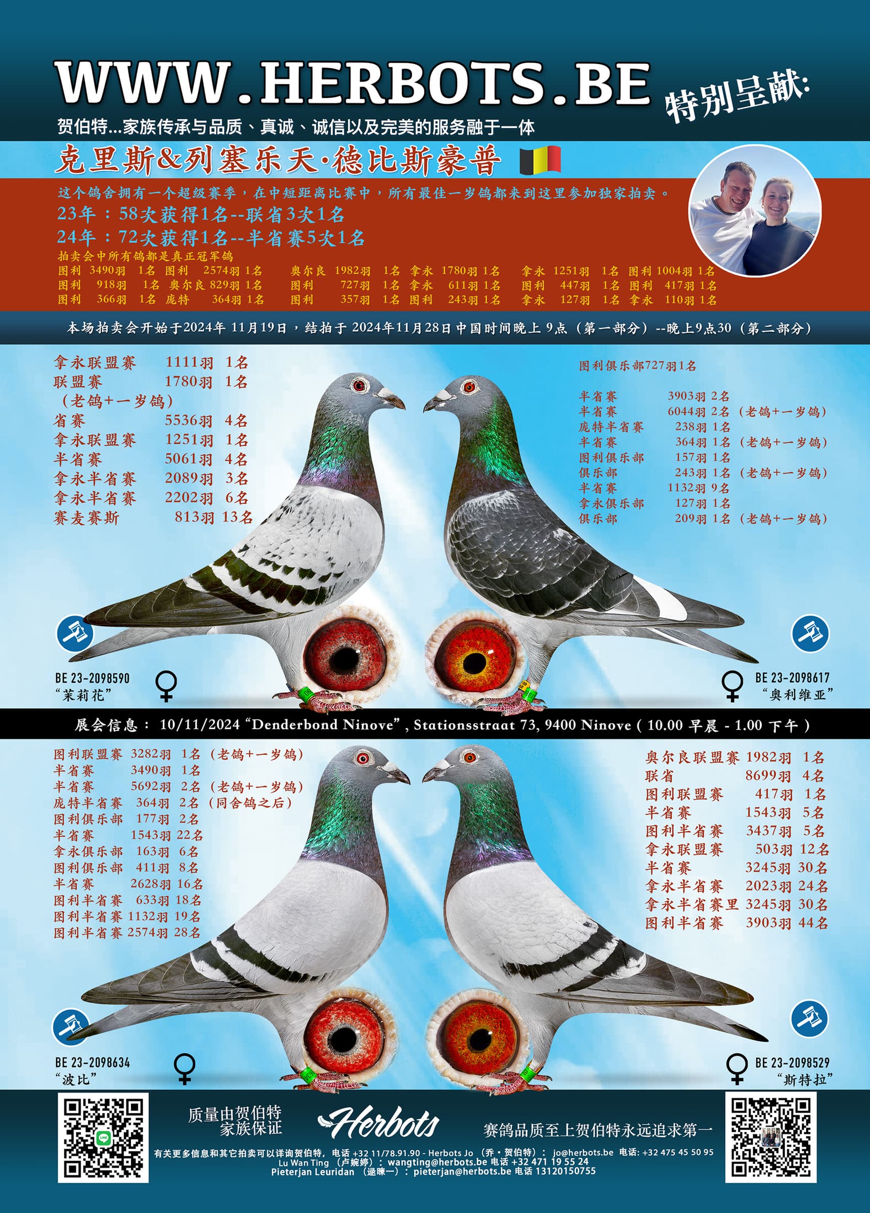 这个鸽舍拥有一个超级赛季,在中短距离比赛中,所有最佳一岁鸽都来到这里参加独家拍卖。