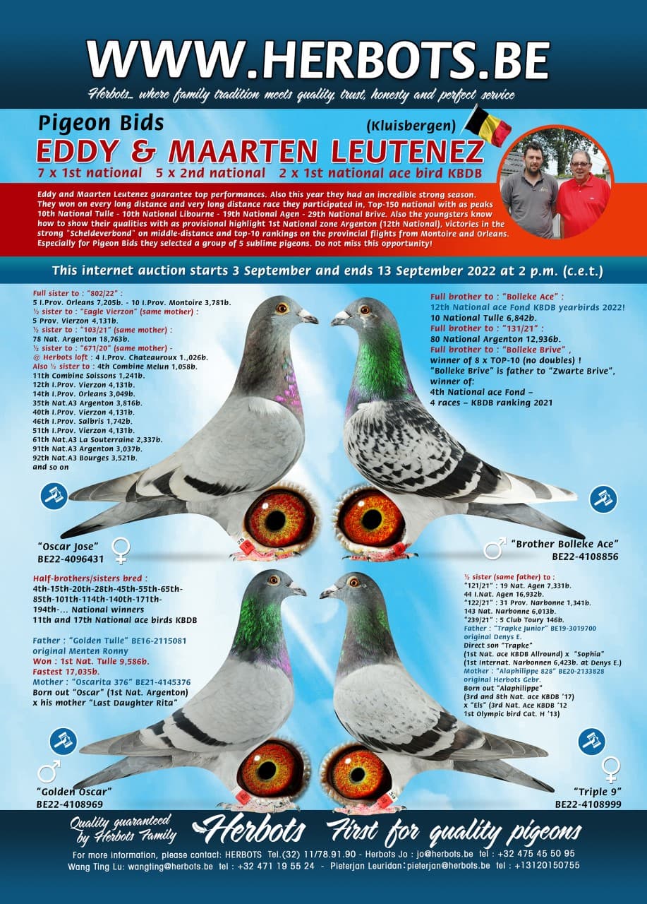 LEUTENEZ EDDY & MAARTEN 艾迪&马腾·鲁腾兹全平辈 “802/22” 获得: