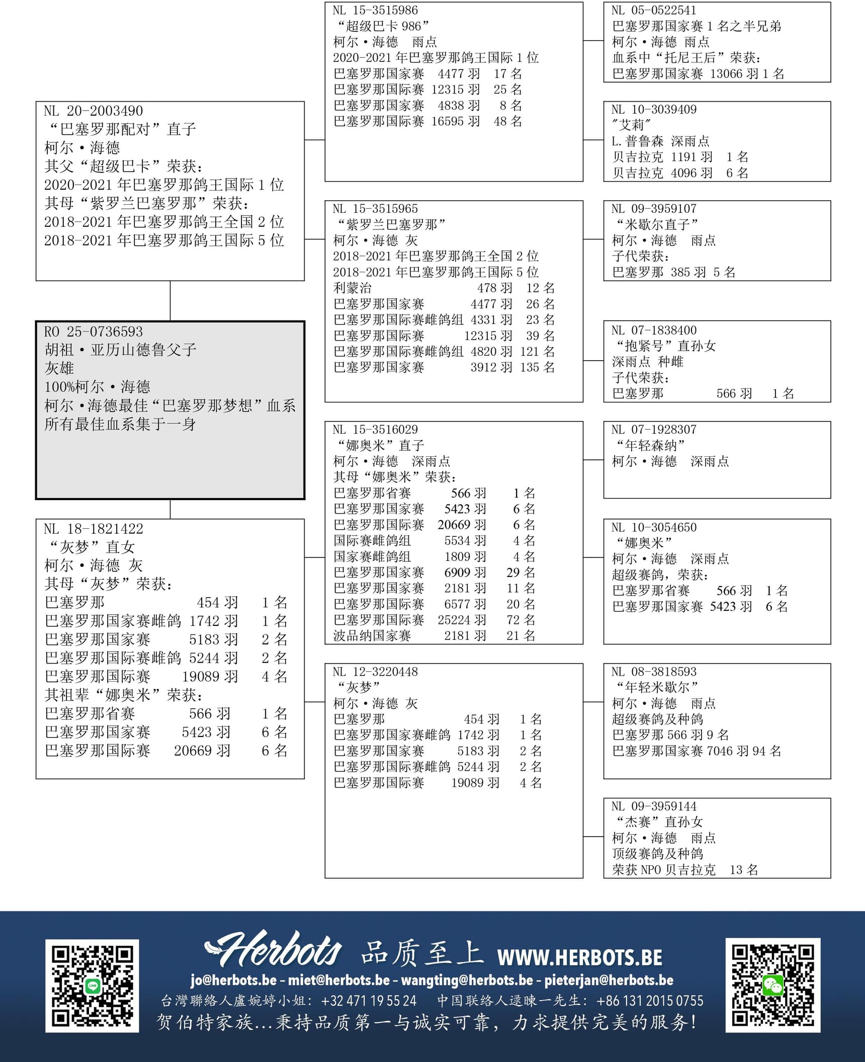 巴塞罗那国家赛雌鸽组 1,742羽1名 - 国家赛 5,183羽2名 –