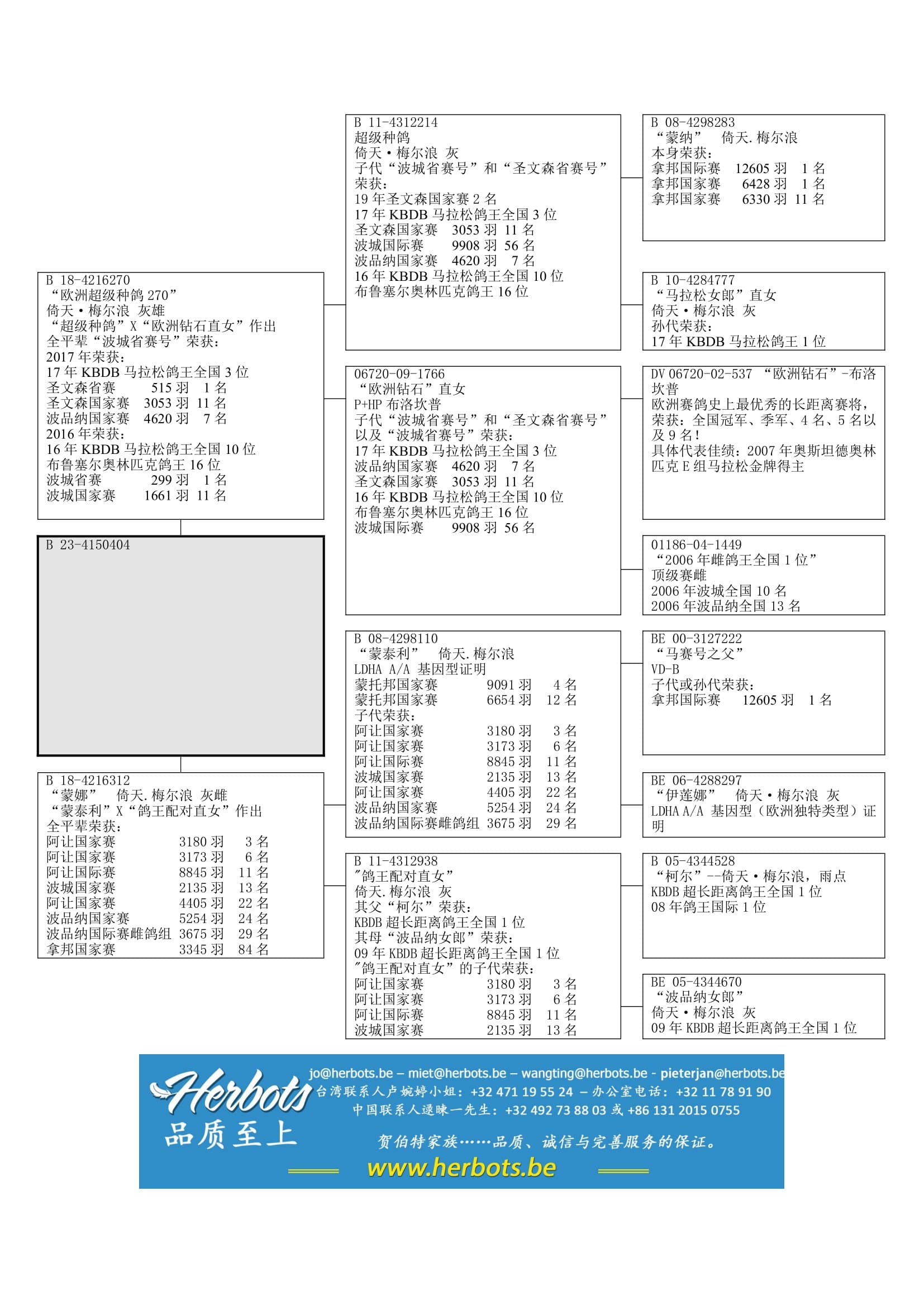 “超级种鸽 214” (“蒙纳” x “马拉松女郎直女”作出) x “欧洲钻石直女” (世界铭鸽 “欧洲钻石”直女)直子