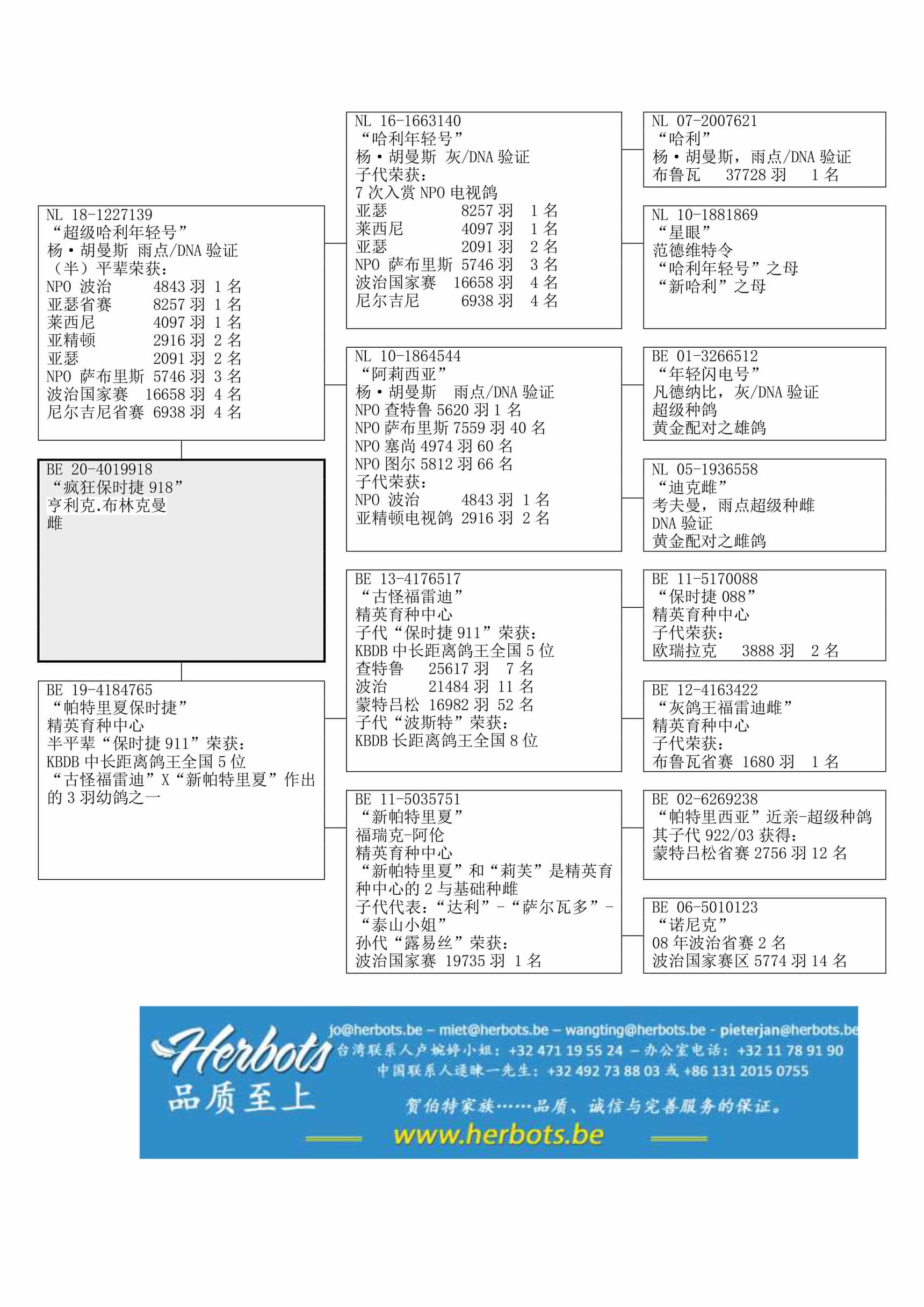 “哈利年轻号”直孙女. “哈利年轻号”的子代荣获NPO/国家赛8 次前10名其祖辈“阿莉西亚”荣获: NPO 查特鲁 5,620羽1名其祖辈“古怪福雷迪”是“保时捷 911”之父