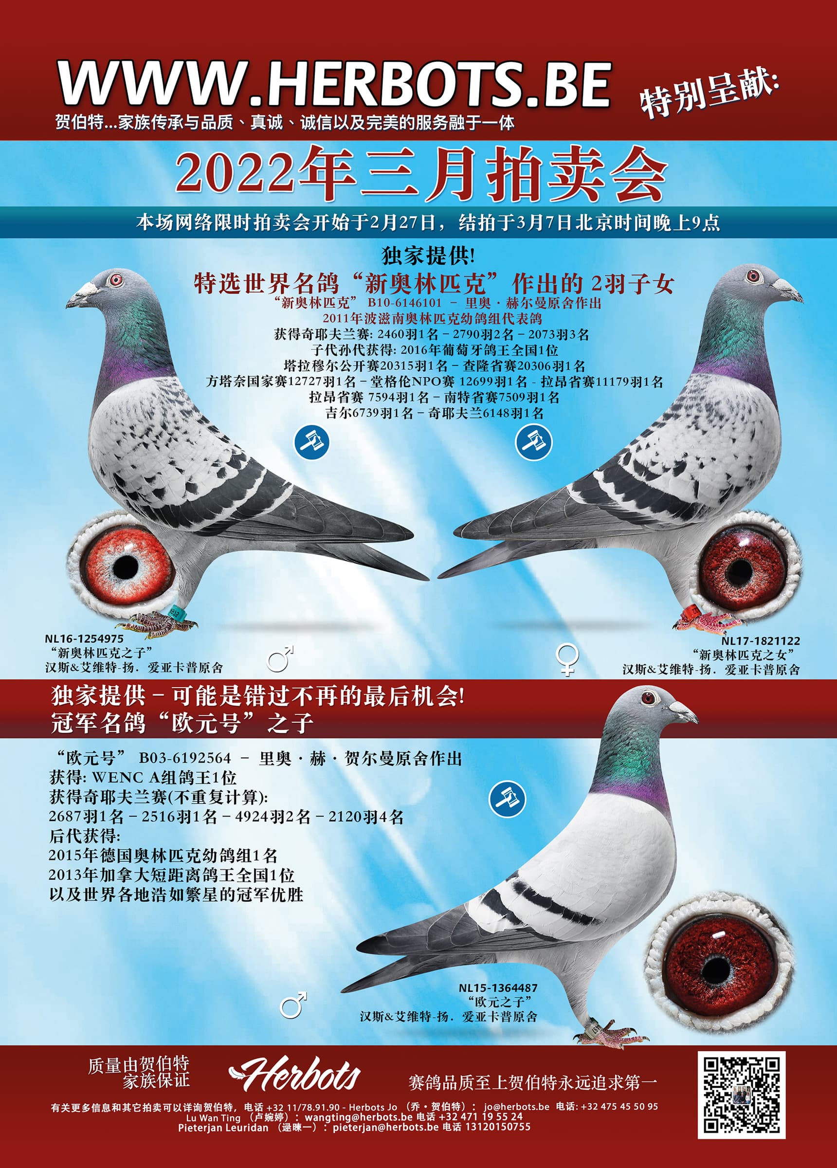 一流的线上拍卖,包含以下顶级原舍鸽: