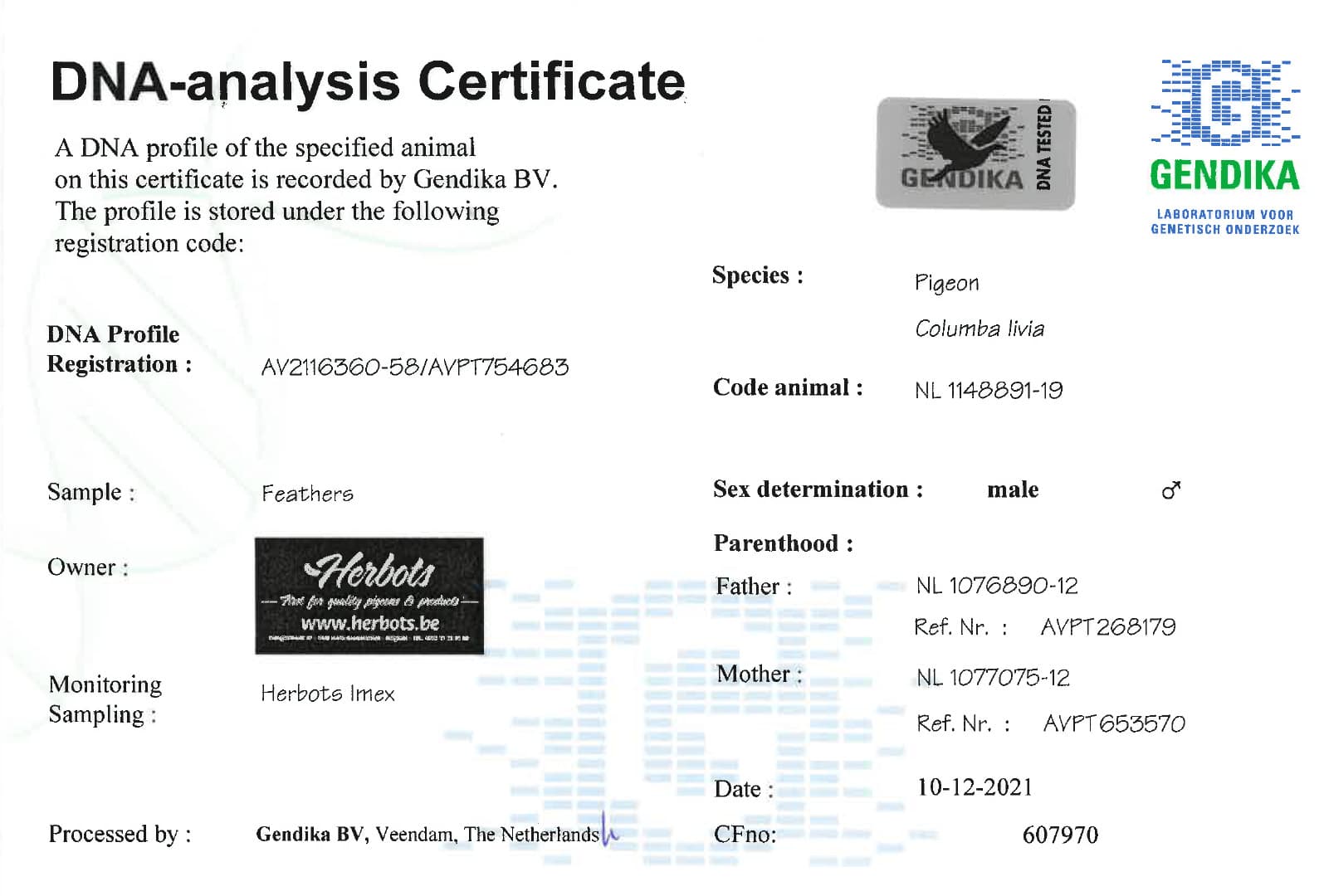 母亲: “小迪克雌”  NL12-1077075