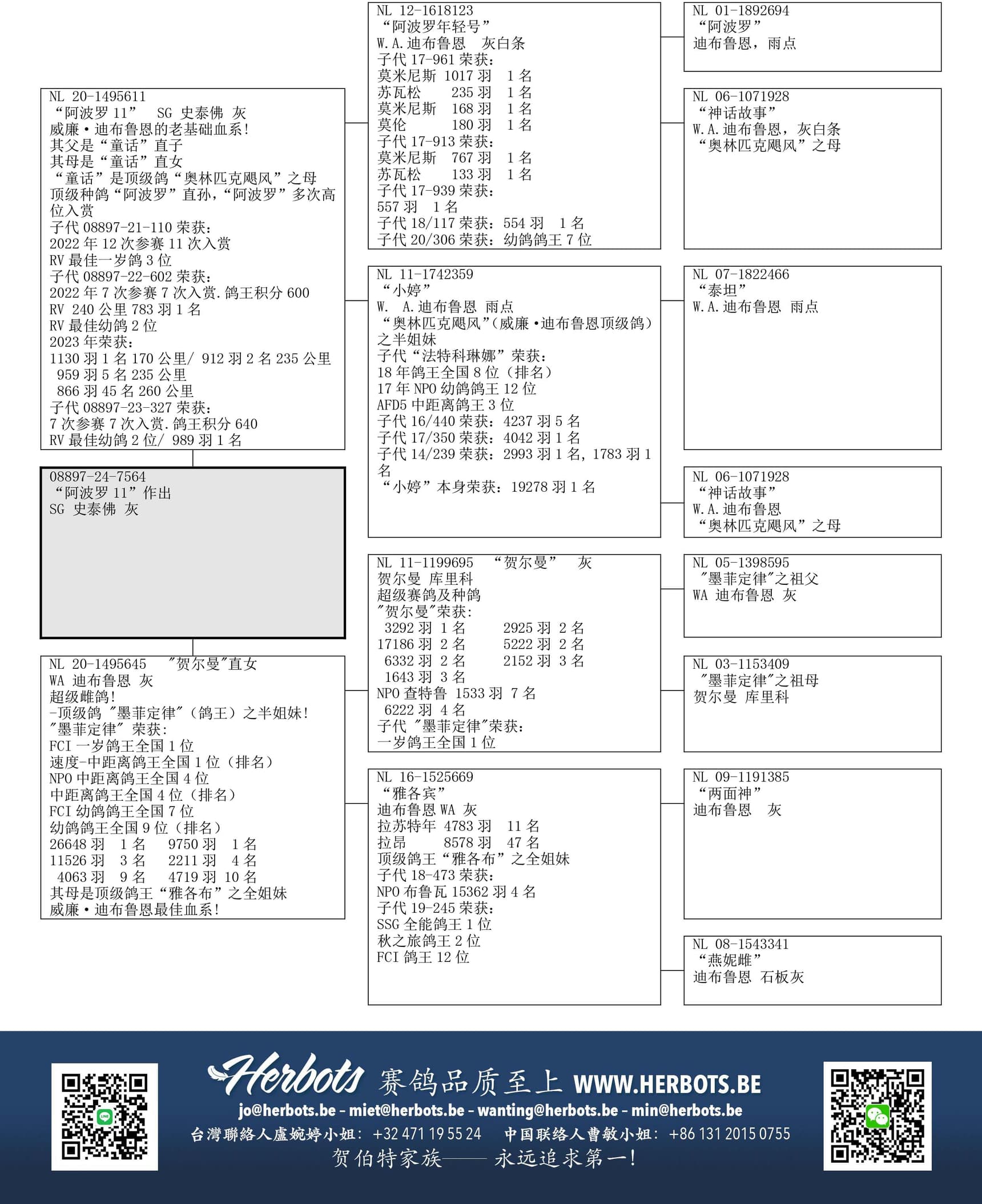 当前的基础种鸽,子孙后代在各类各项比赛中获得