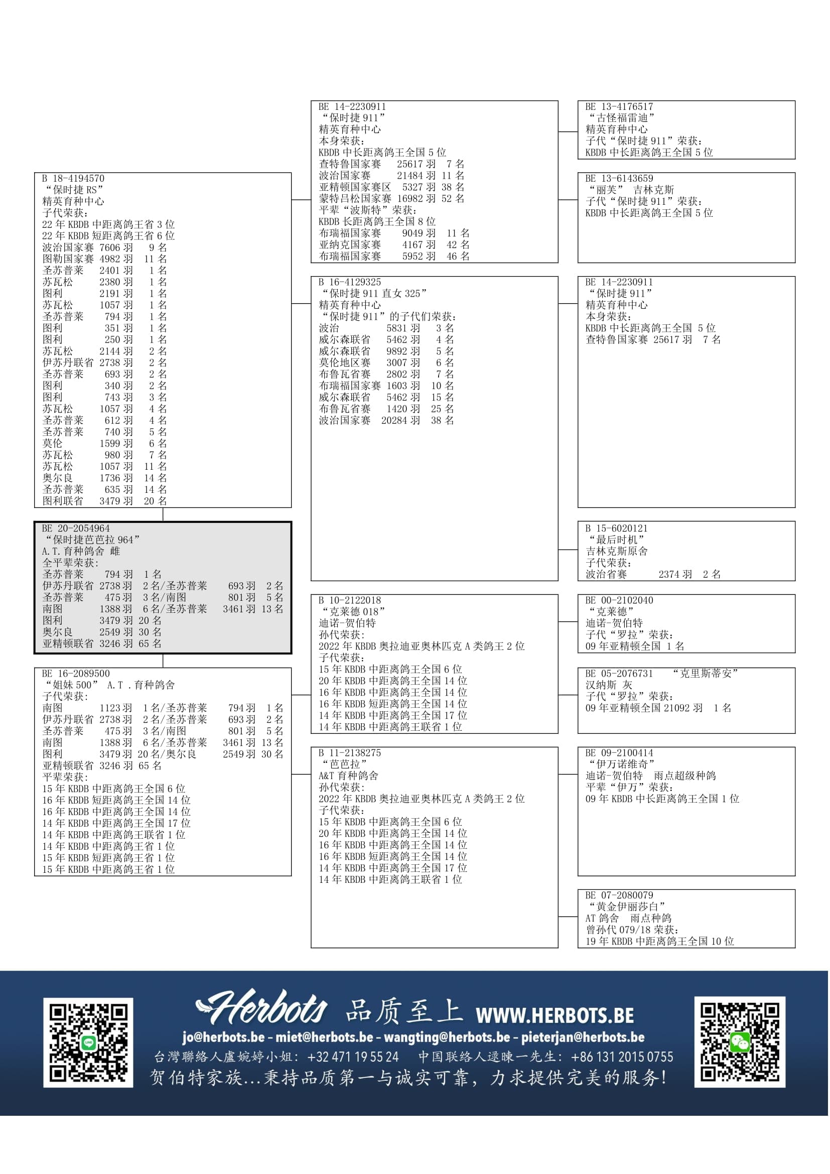 出自 “保时捷 911” (B14-2230911 – KBDB 中长距离鸽王全国5位) x 他自己的直女