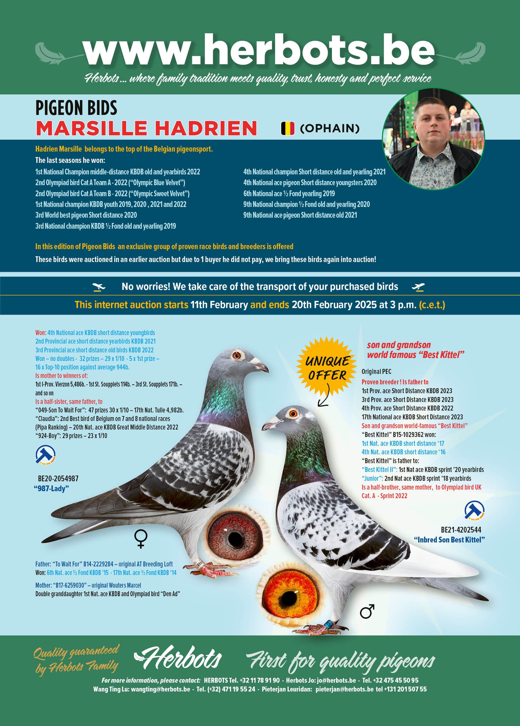 这些鸽子在之前的拍卖会上拍过了,但由于一位买家未付款,我们将再次拍卖这些优质鸽子!